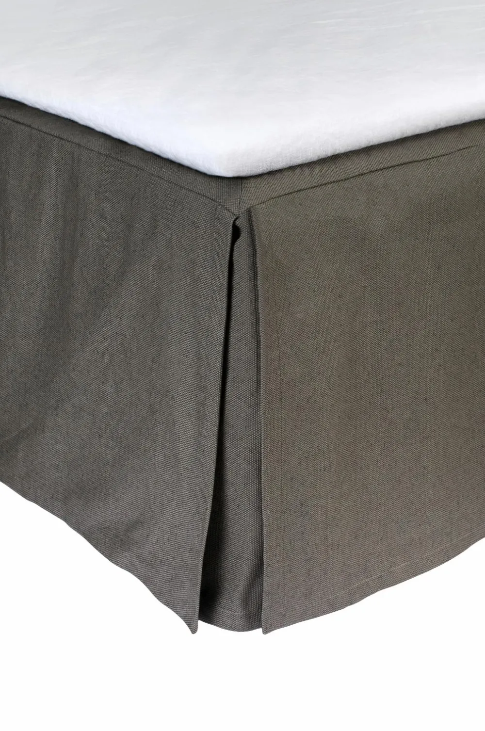 Weeknight Sengekjolen er lavet i en lidt tungere kanvas i halvlinned og med enkle syninger for et rent, tidløst look. Sengenederdelen fås i fire bredder, fra 90 cm til 180 cm, og selve nederdelen fås i to højder, 42 cm og 52 cm. Farverne er hvid og ask. Plej dit sengenederdel ved at lufte det udenfor, når det er nødvendigt. Små pletter kan behandles med varmt vand og pletfjerningsmiddel til tekstiler, alternativt opvaskemiddel eller vaskemiddel. Brug kemisk rensning til hårdere pletter. Renseri
