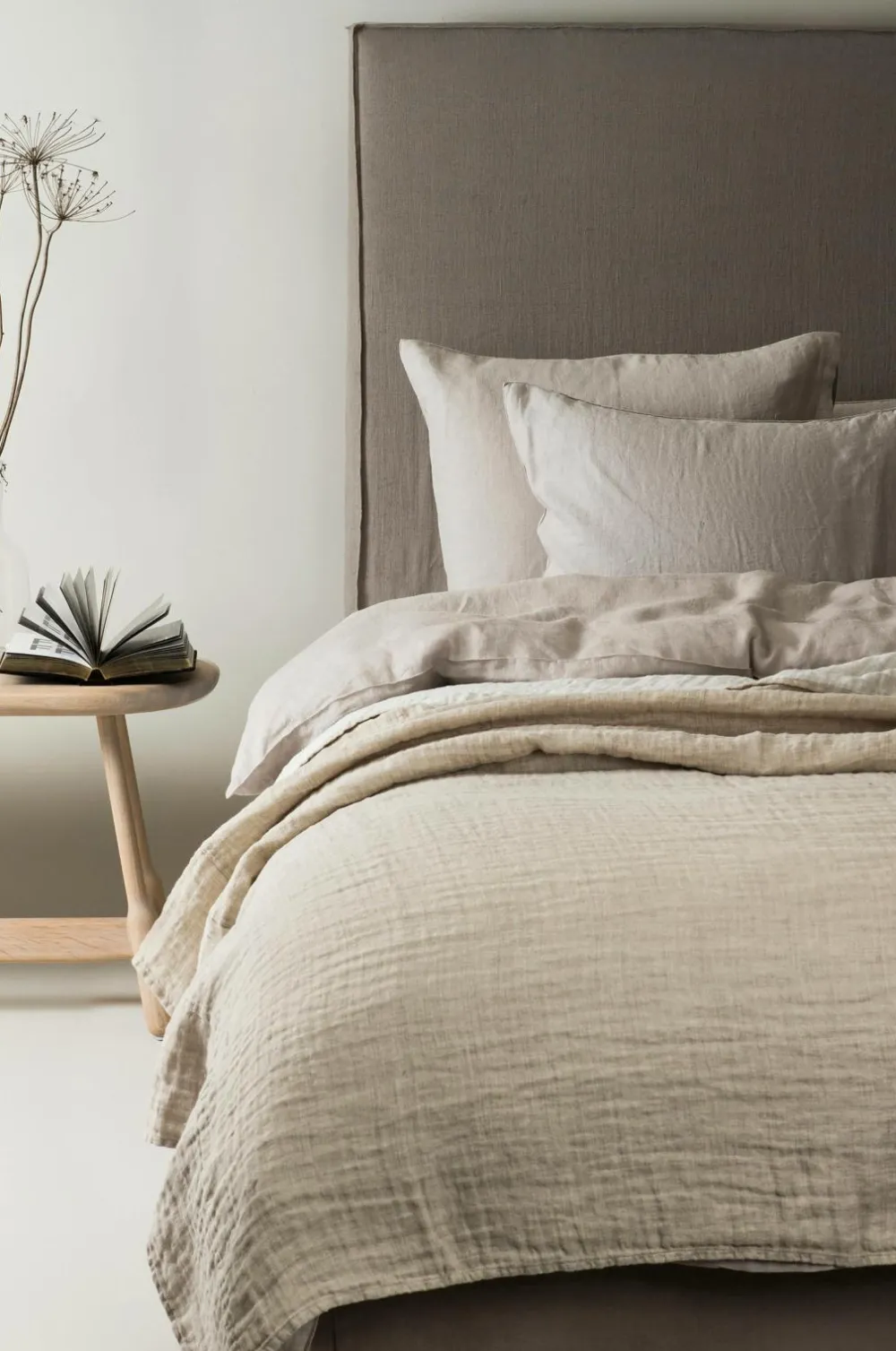 Sengetæppe i dobbeltvævet hør, der er vasket, så det får et krøllet udseende. Sengetæppet har forskelligfarvede, kontrasterende sider, hvilket gør det mere iøjnefaldende. Den krøllede tekstur giver et afslappet og indbydende udtryk og er let at smide på sengen. Hannelin sengetæpper fås til enkeltsenge og dobbeltsenge og findes i flere farver og fungerer godt at kombinere med plaider og puder fra samme serie for at skabe en rigtig hyggelig seng. Sengetæppet har dobbeltsømme langs hver side; på størrelse 160×260 er sømmen placeret 15 cm fra sidekanten, og på størrelse 260×260 er sømmen placeret 65 cm fra sidekanten. Maskinvask 40°C skåneprogram, tørretumbling ved lav varme, vaskes separat. Kan krympe 1-2%.