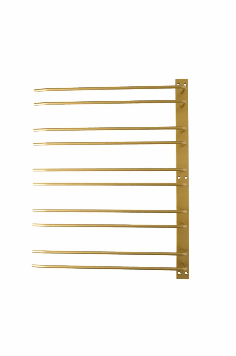 Guldglasophæng i barstil med fem rækker til loftmontering, dette guldfarvede glasophæng til loftmontering er 400 mm dybt og har plads til 20 glas. Bredde: 55 cm, total dybde inkl. plade: 42 cm, højde: 4 cm. Fremstillet i Sverige.