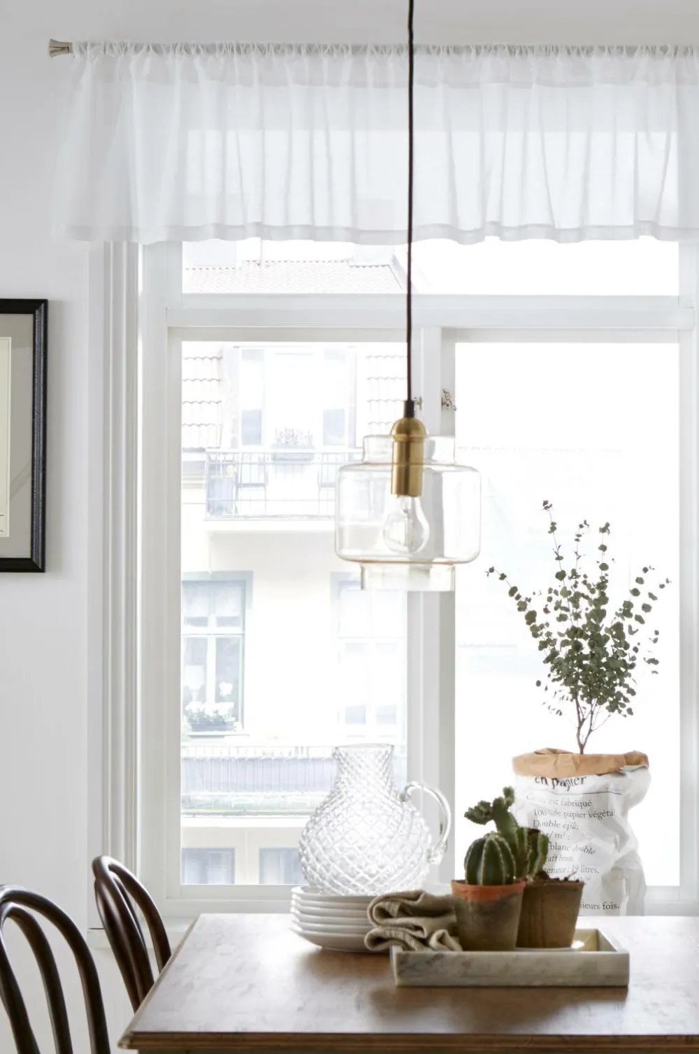 Luftig og let voile af 100% bomuld som både slipper lyset igennem og beskytter mod indsyn. Syet løbegang foroven. Str. 40×250 cm.
