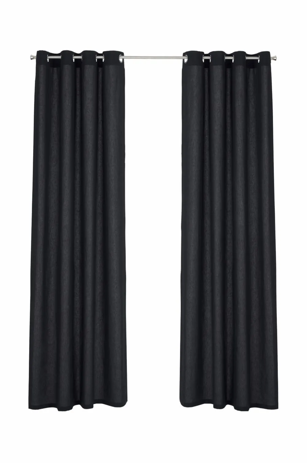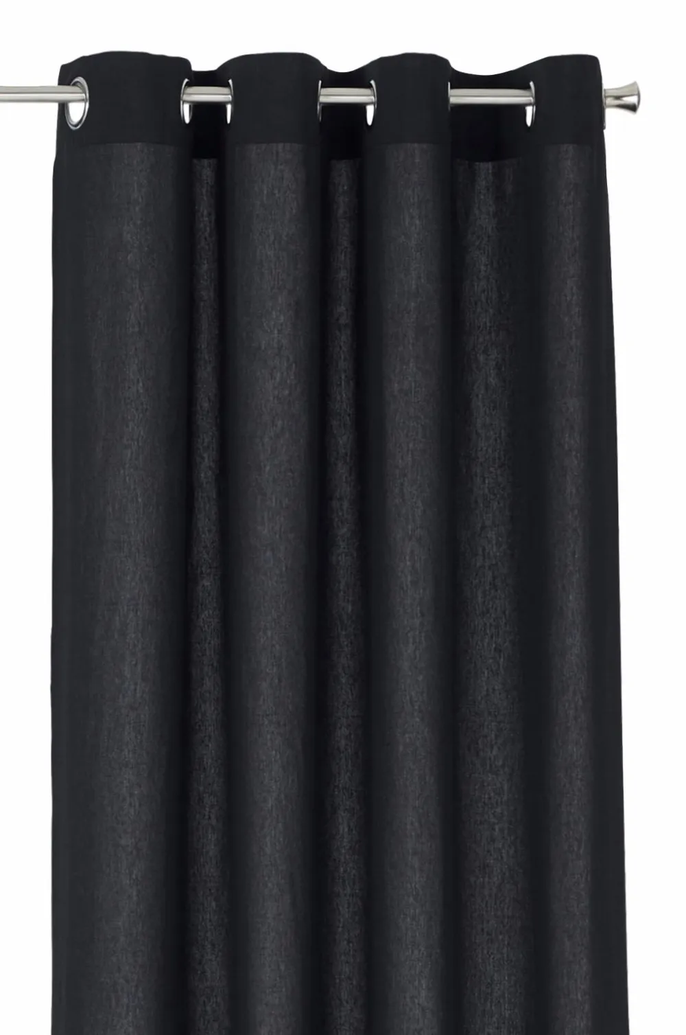 To gardiner med ringe af et lidt kraftigere stof i halvpanama af bomuld. Metalringe foroven. Bredde 145 cm. To længder: 220 og 250 cm.