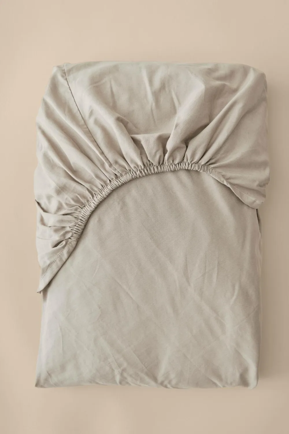 Faconsyet lagen i blød bomuld. Trådtæthed 144 TC. Elastikbånd i hjørnerne. Hjørneelastik 25 cm. Passer til madrasser op til 10 cm.