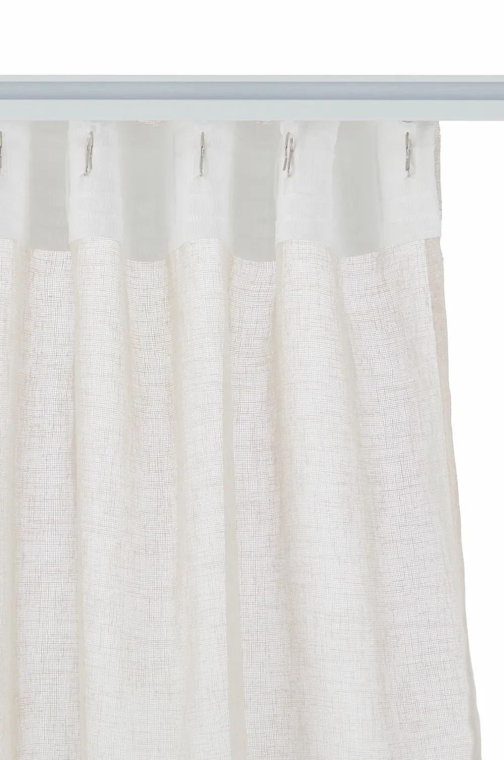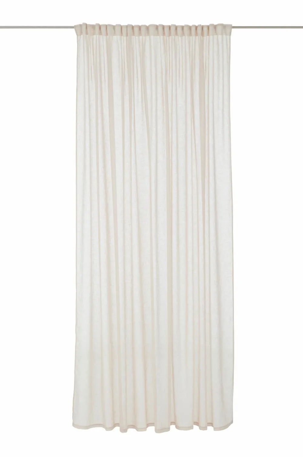 Ekstra bredt multibåndsgardin i løst vævet hørlook i blød, genindvundet polyester. Multibåndet gør, at du enten kan hænge gardinet direkte på en gardinstang gennem de skjulte stropper eller anvende ringe, nålekroge eller fingerkroge. Snoren i rynkebåndet gør, at du let kan skabe ensartede, flotte læg. Sælges enkeltvis