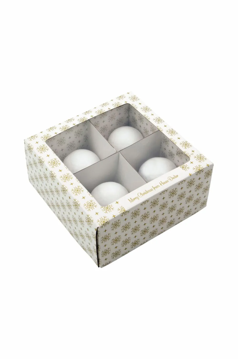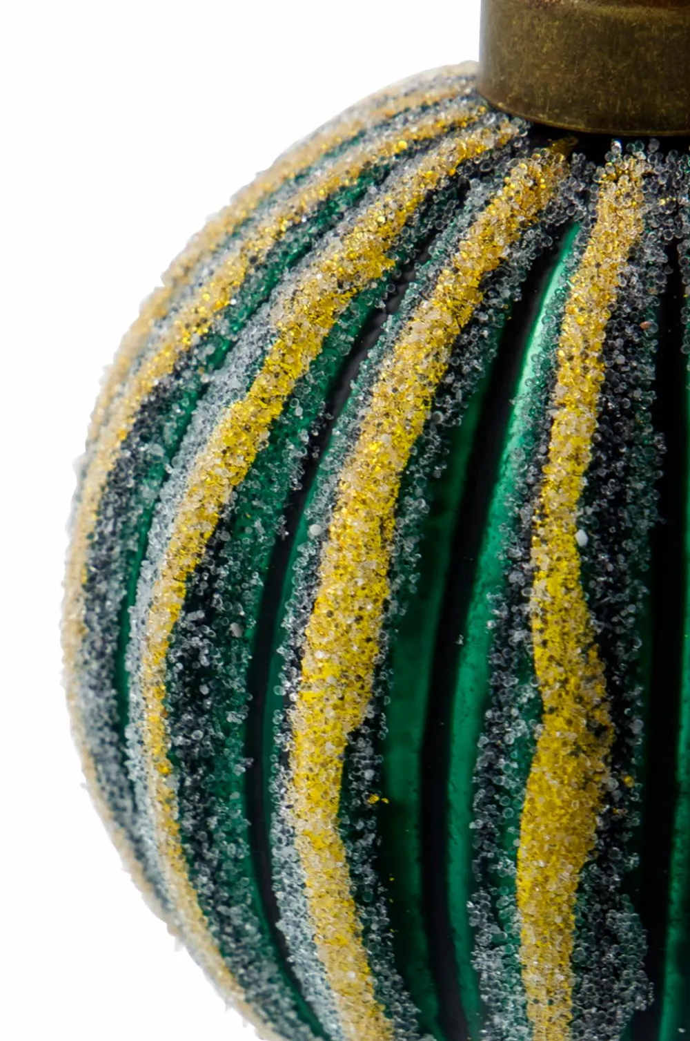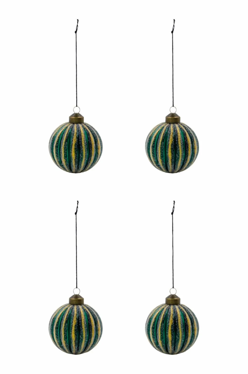 Pynt dit juletræ med dette udsøgte sæt med fire mundblæste glasornamenter. Farven, der fremhæves af matterede striber, udstråler en legende, men tidløs charme. Disse klassiske dekorationer forbedrer elegant din festlige indretning.