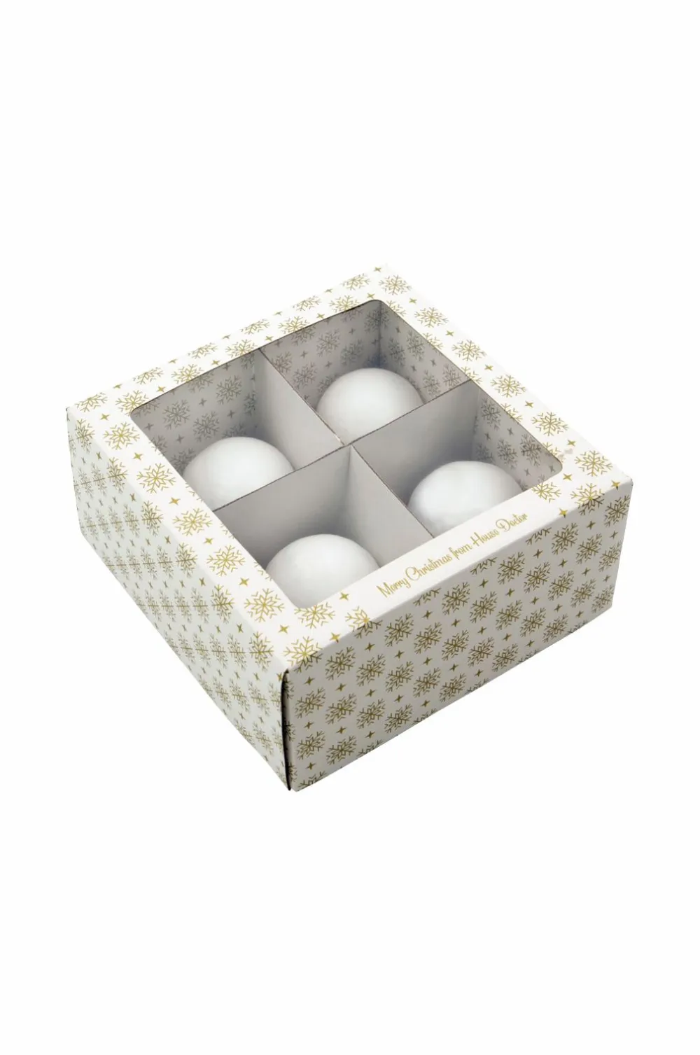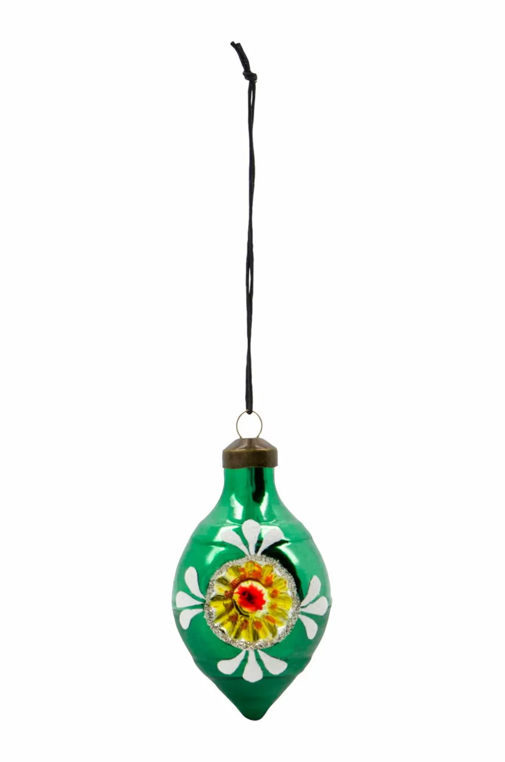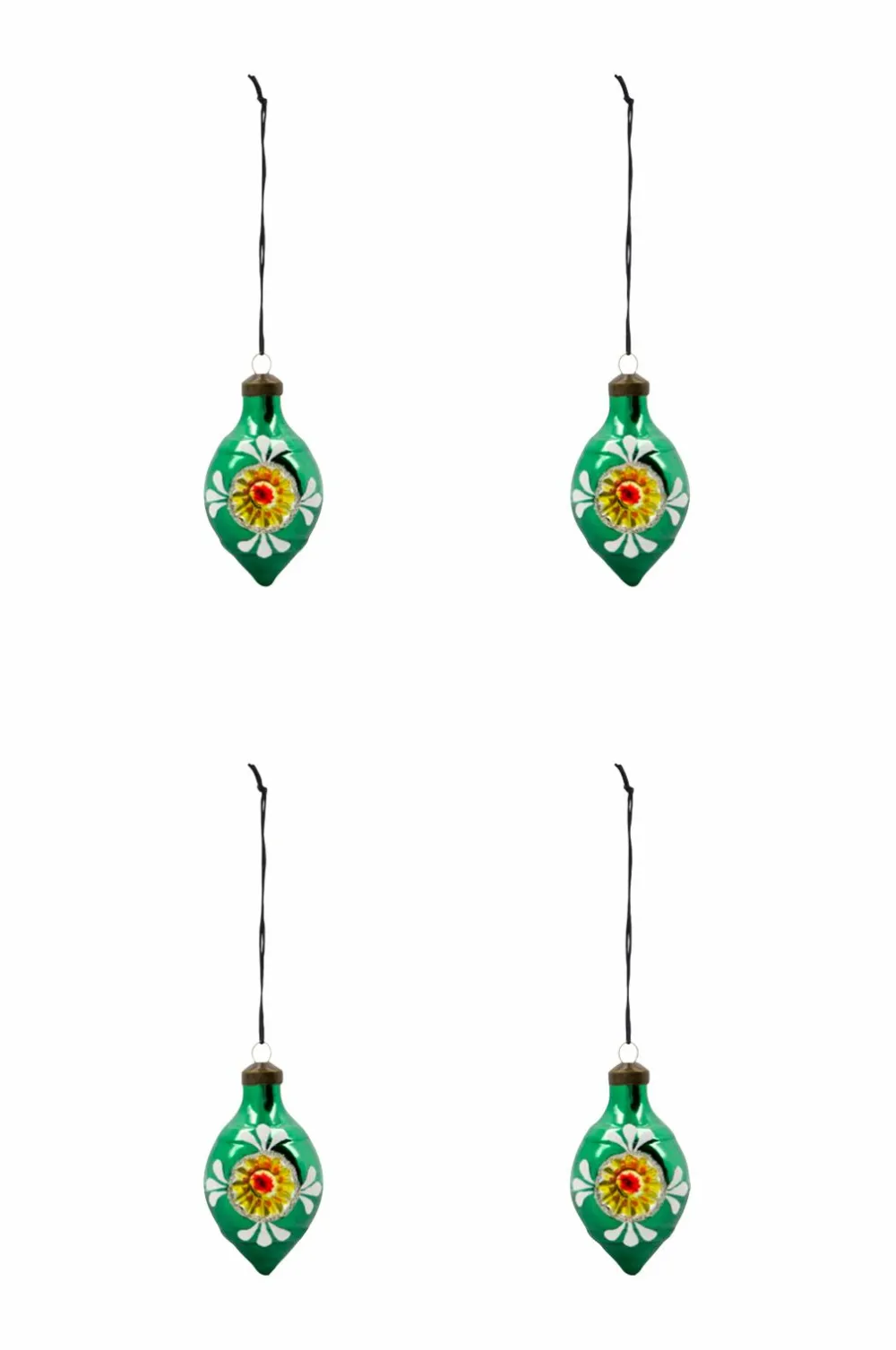 Løft din festlige indretning med disse nostalgiske mundblæste glasornamenter. Det dråbeformede design, der er udsmykket med et håndmalet mønster, udstråler tidløs elegance. En guldfarvet fordybning med en sølvglitrende kant forstærker vintagekarakteren. Dette sæt med fire ornamenter tilføjer en sofistikeret charme til enhver juleindretning.