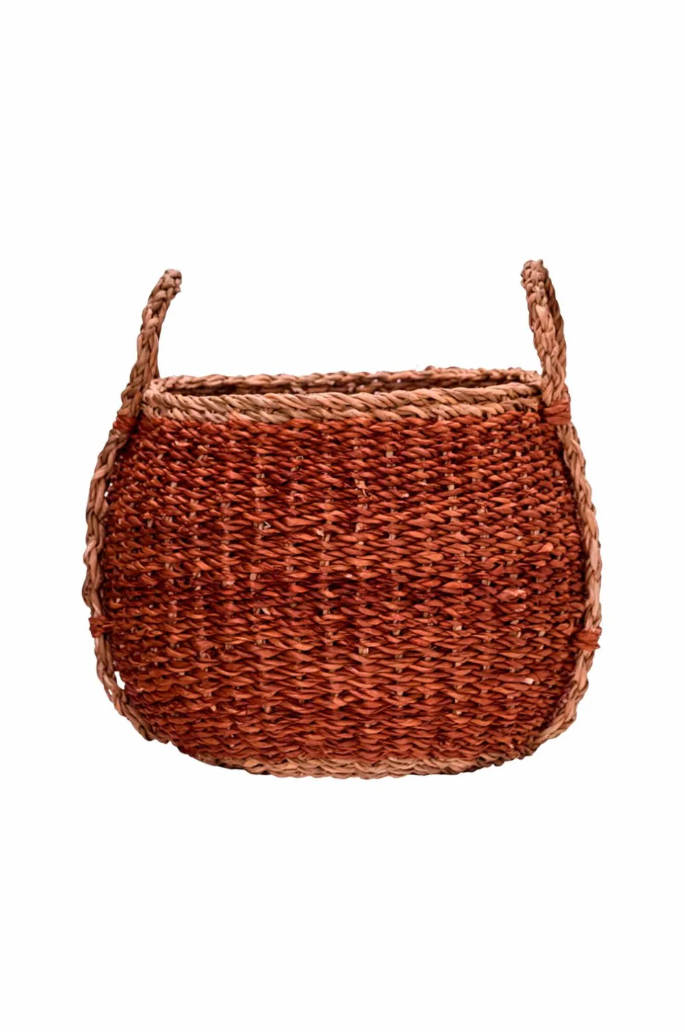 Giv dit hjem et taktilt løft med dette par håndlavede opbevaringskurve, fremstillet af naturligt havgræs. Deres runde form og praktiske håndtag tilføjer både charme og funktionalitet, så opbevaring bliver et stilfuldt detalje overalt – læg tæpper i stuen, brug dem til hatte og tørklæder i entreen, eller brug dem som dekorativt accent i soveværelset. Den dybe, varme farve skiller sig øjeblikkeligt ud, samtidig med at den passer ind i både lyse og mørke interiører, så hvert hjørne føles indbydende og gennemtænkt indrettet. H: 30 cm