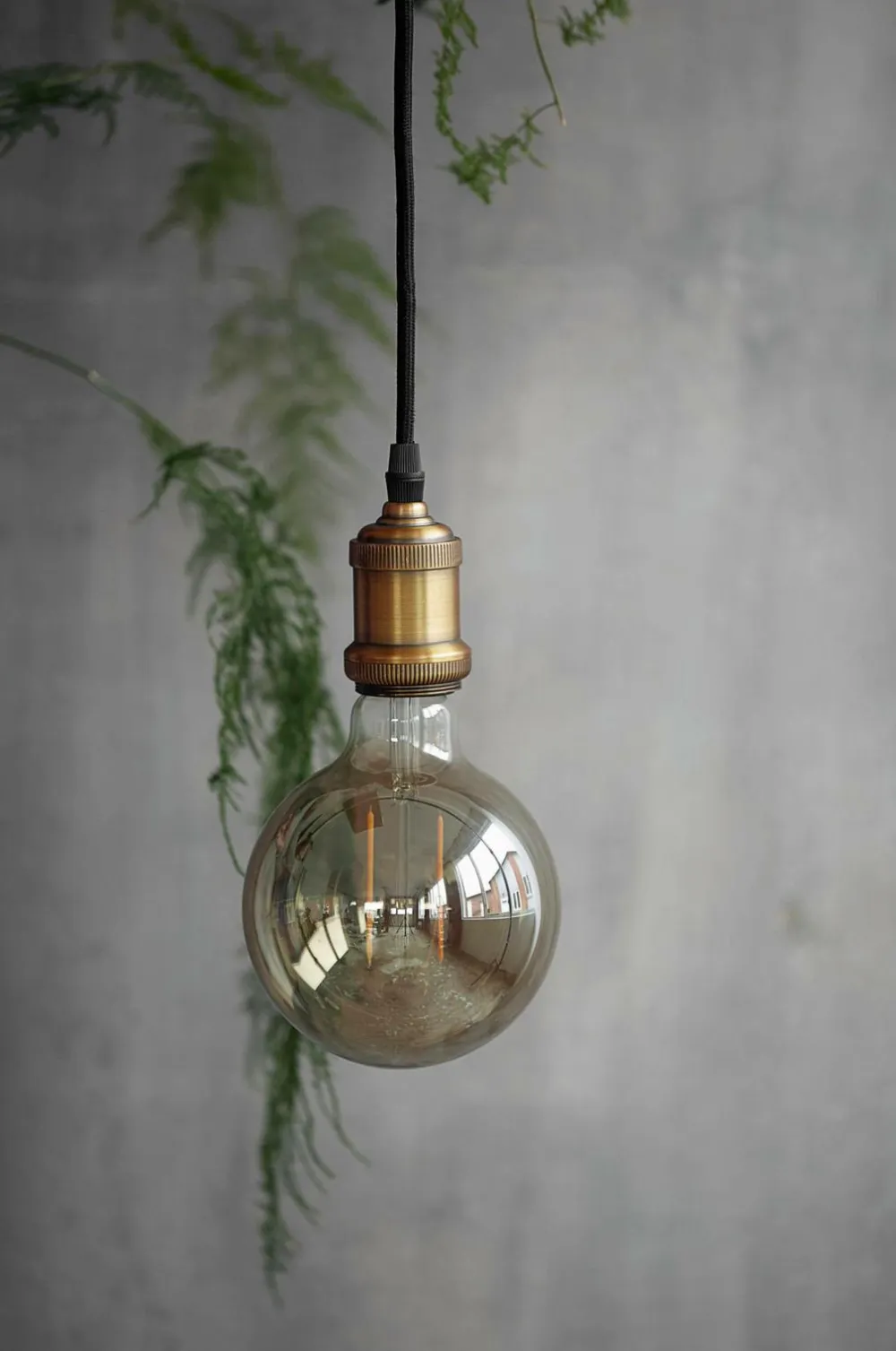 Fly er en smuk, sort tekstilledning med sokkel med en smuk messingfinish. Ledningen er 3 m lang, hvilket gør det muligt at bruge den på mange forskellige måder. Sæt en flot glødepære i, og hæng den alene eller sammen med andre lamper i et hjørne. Mål: diameter 4,5 cm, højde 14 cm, E27, maks. 40 W. Pære medfølger ikke.