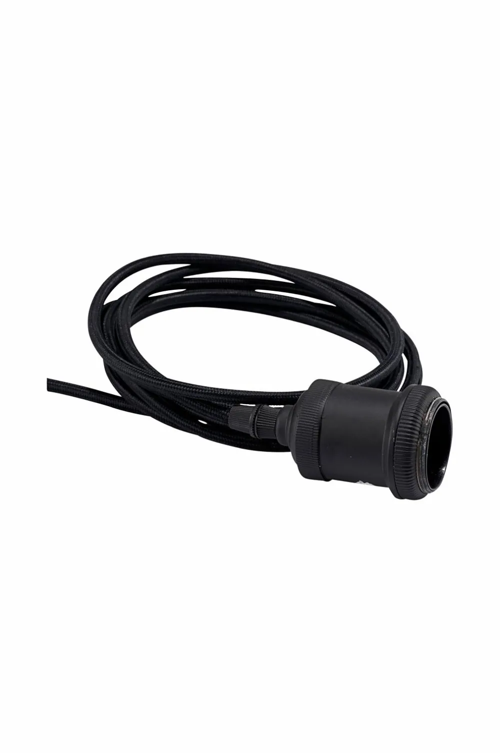 Loftlampe/lampeledning fra House Doctor med 3 m sort stofledning og sokkel i jern. Kan anvendes alene eller med valgfri skærm. E27-sokkel. Maks. 40 W. Pære medfølger ikke. Kontakt medfølger ikke.