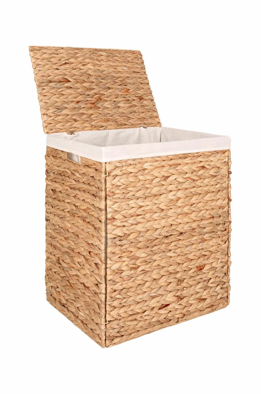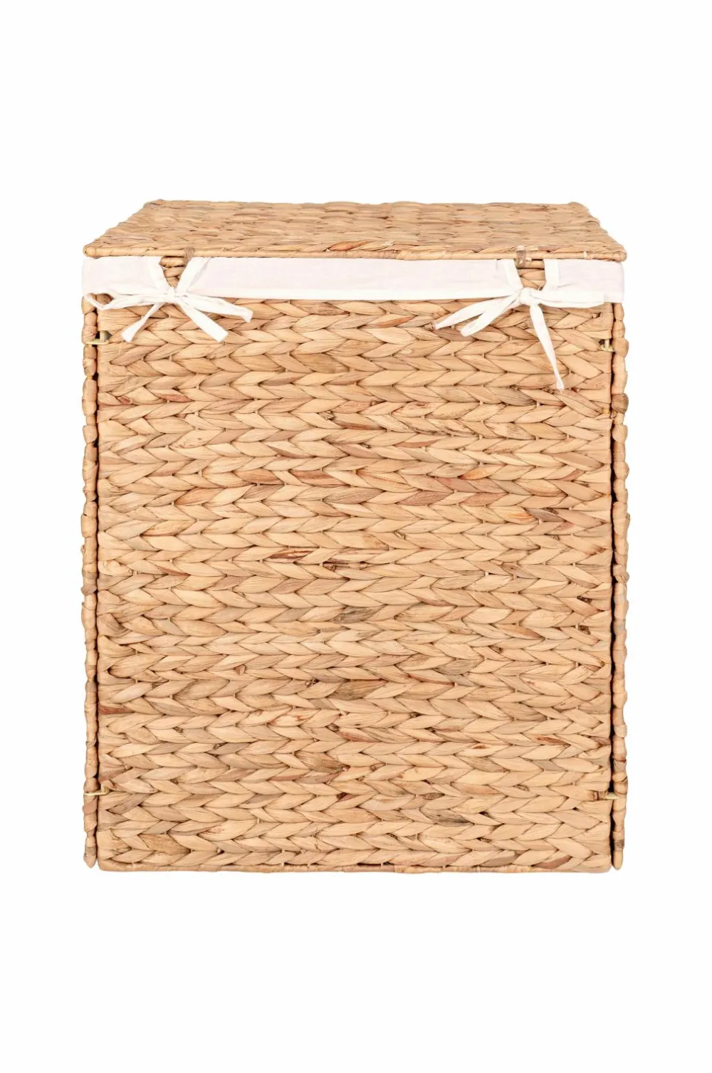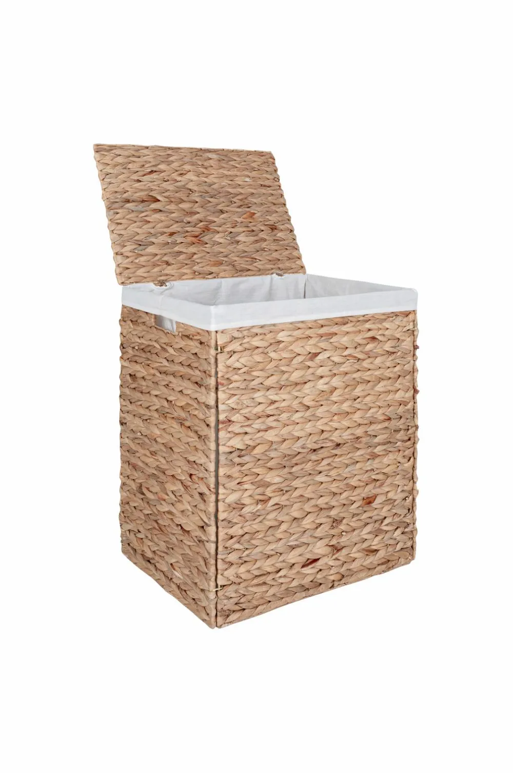 Sammenklappelig, foret vasketøjskurv med låg, af vandhyacint 43x32x55 cm