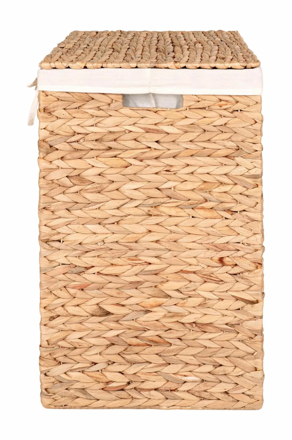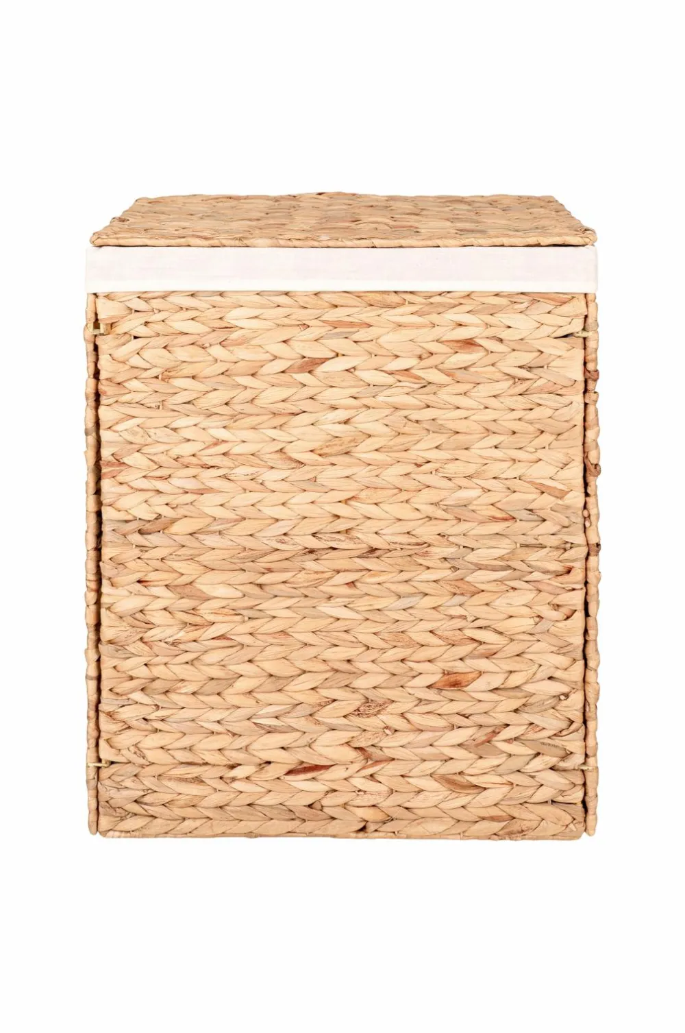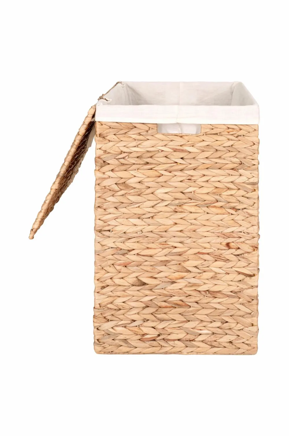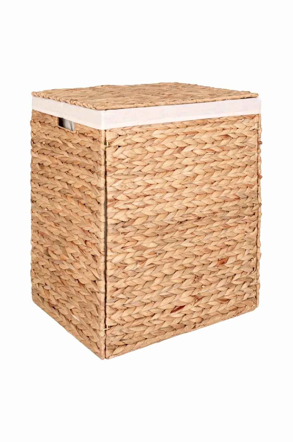 Sammenklappelig, foret vasketøjskurv med låg, af vandhyacint 43x32x55 cm