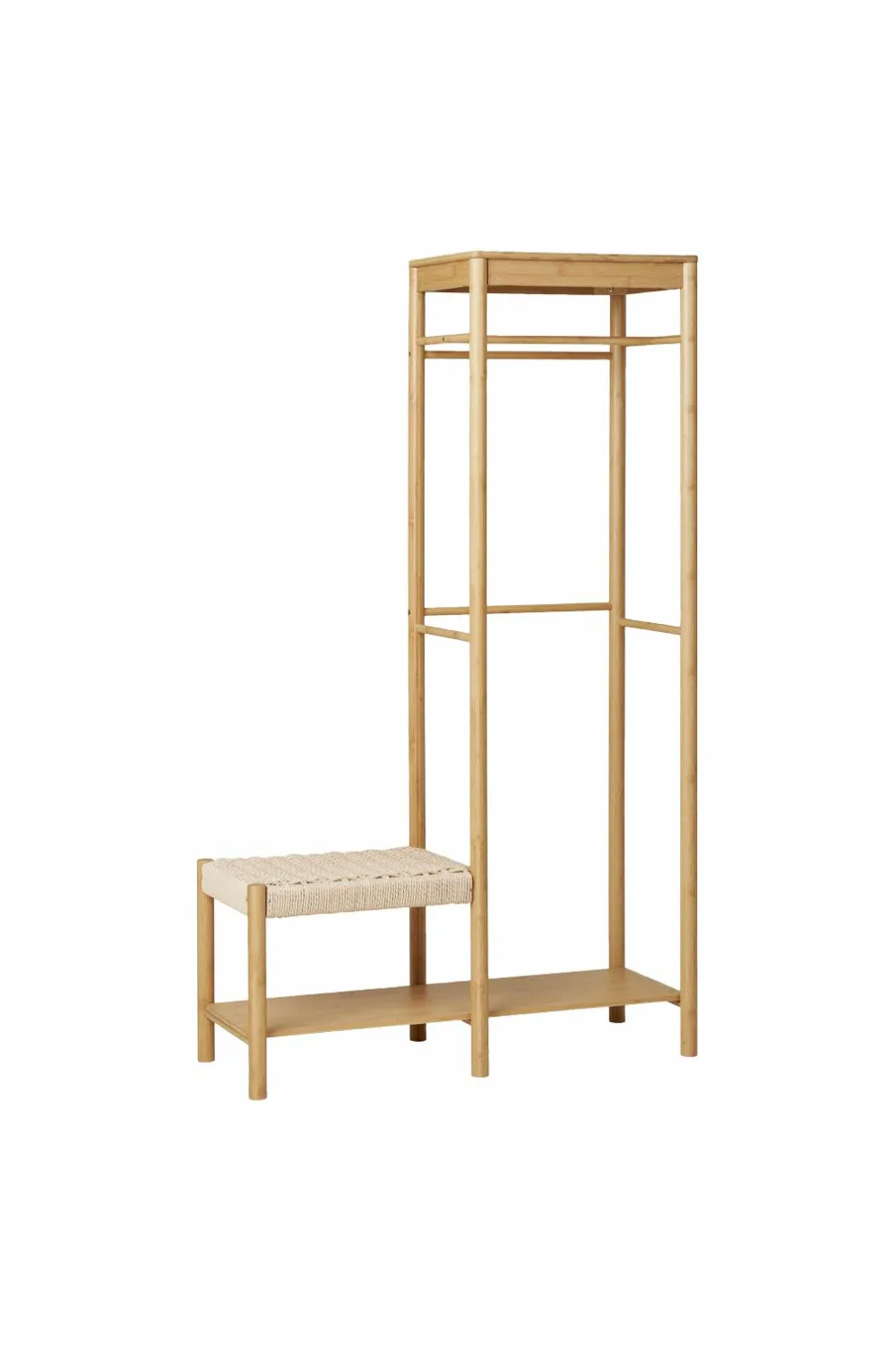Tøjstativ med naturlig flettet bænk, bambus