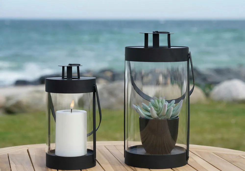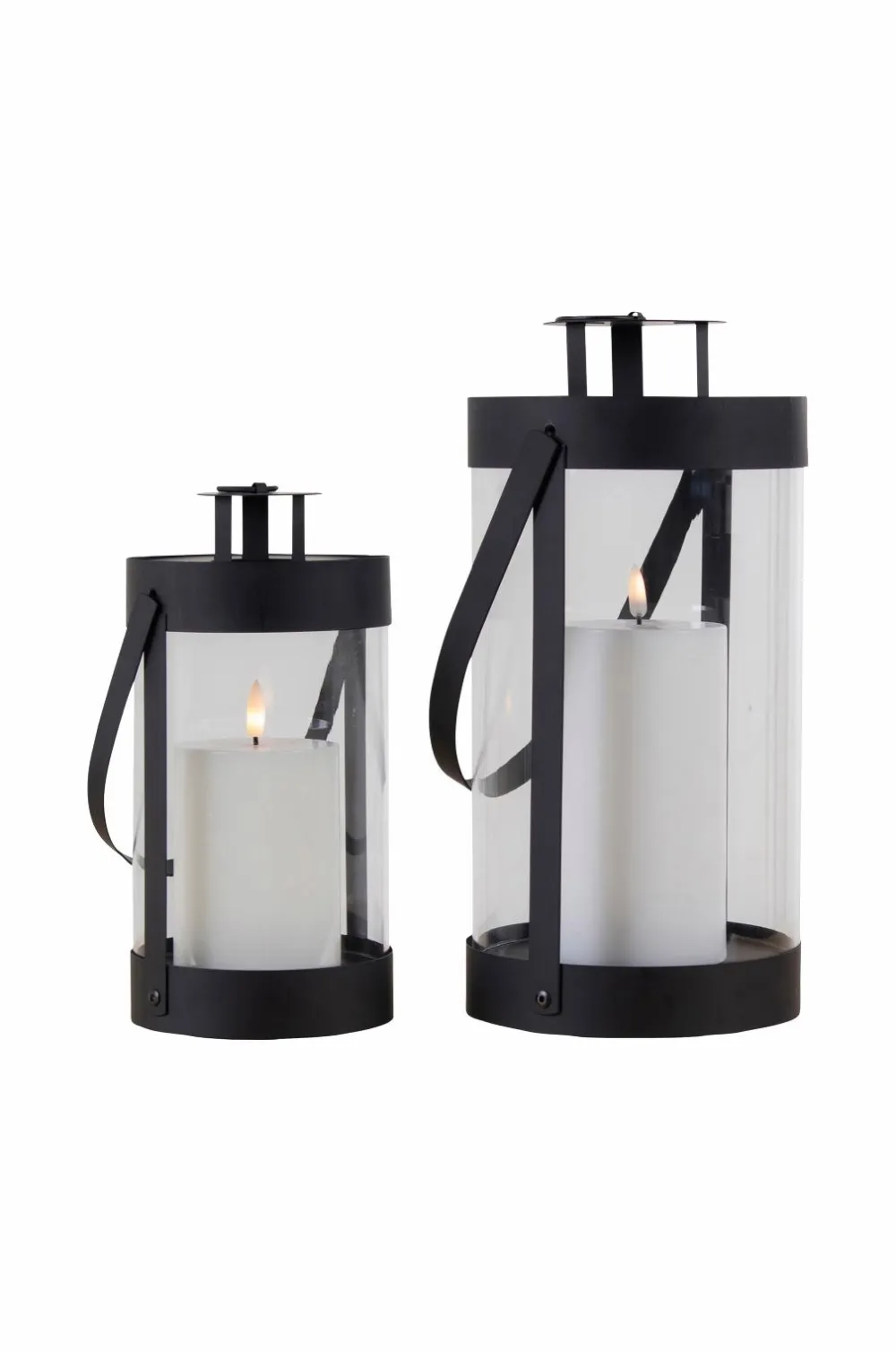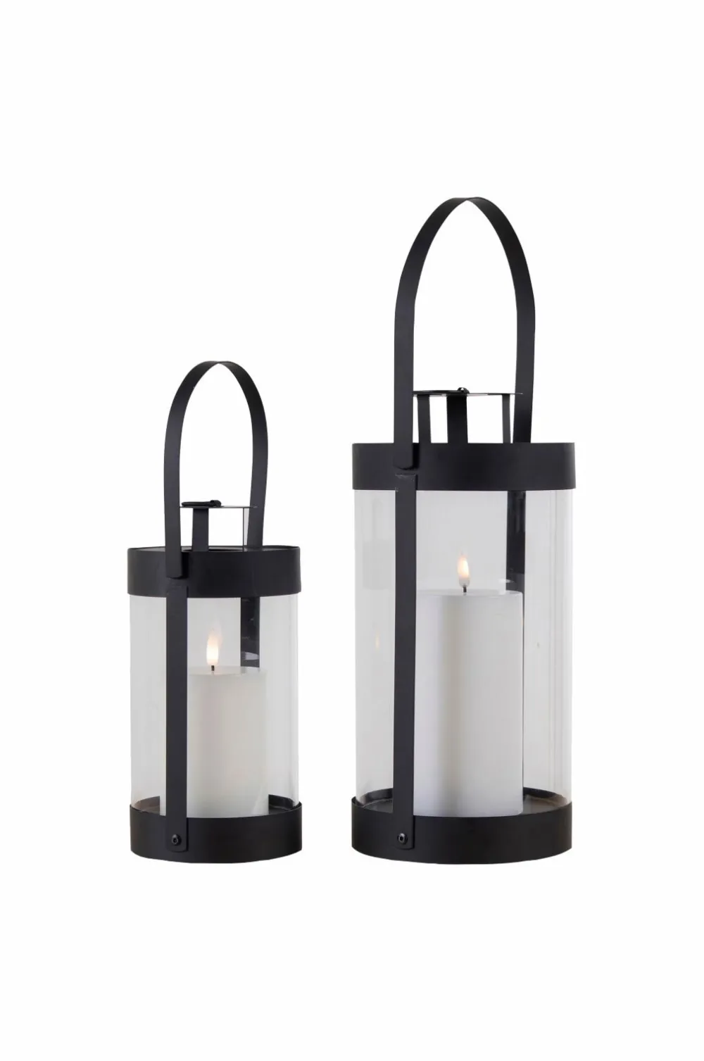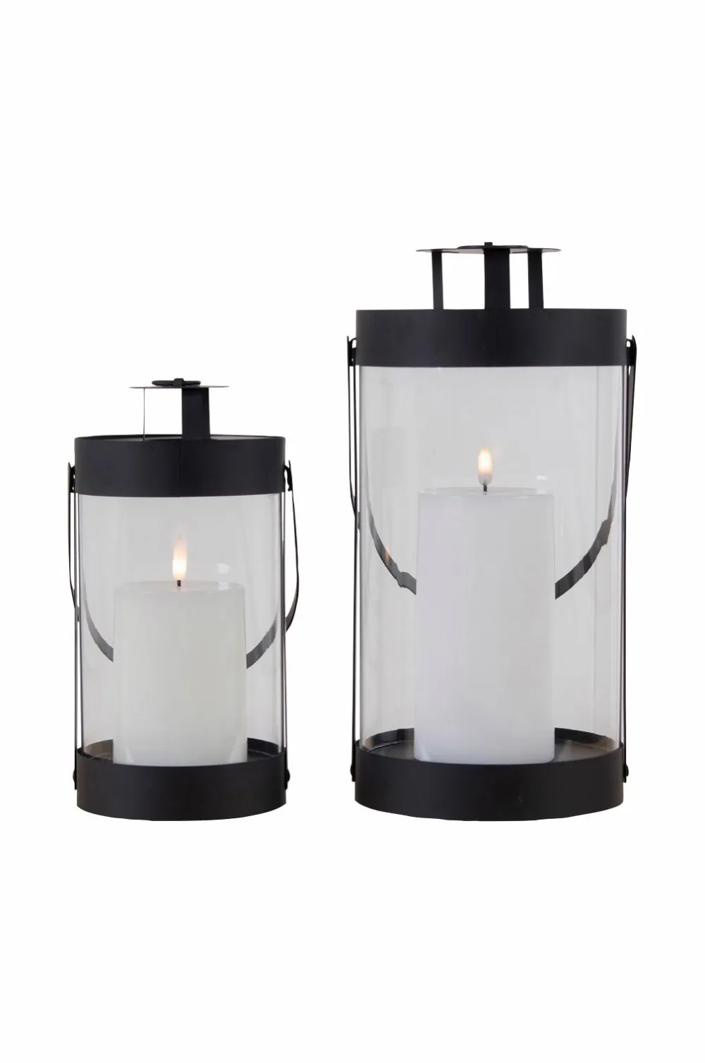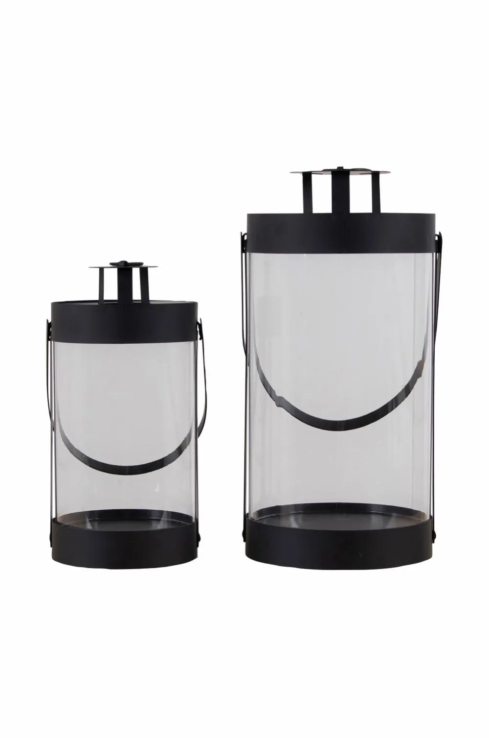 2 stk. lanterner af stål og glas. Samlet. 11,5-14,5×11,5-14,5×24-31,5. 24-31,5 kg