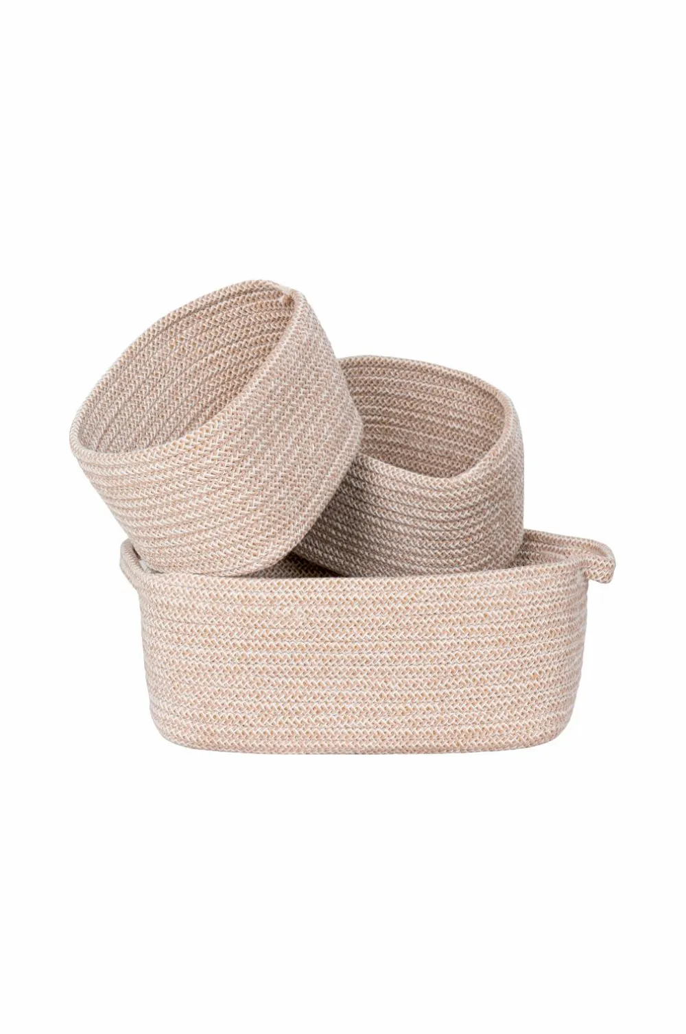 Kurv, bomuld, beige, sæt med 3 stk.