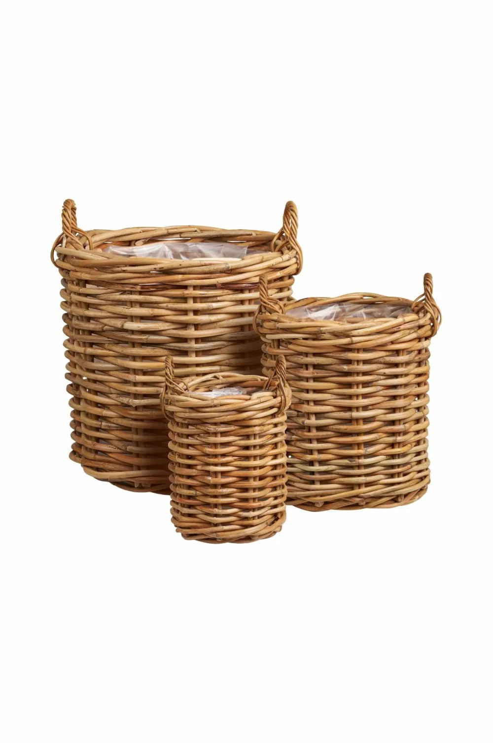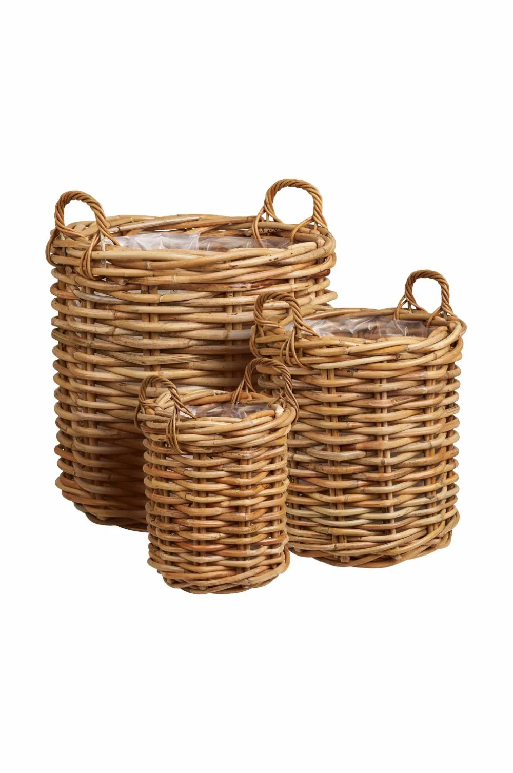 Kurve, kubu rattan, natur, sæt med 3 stk.