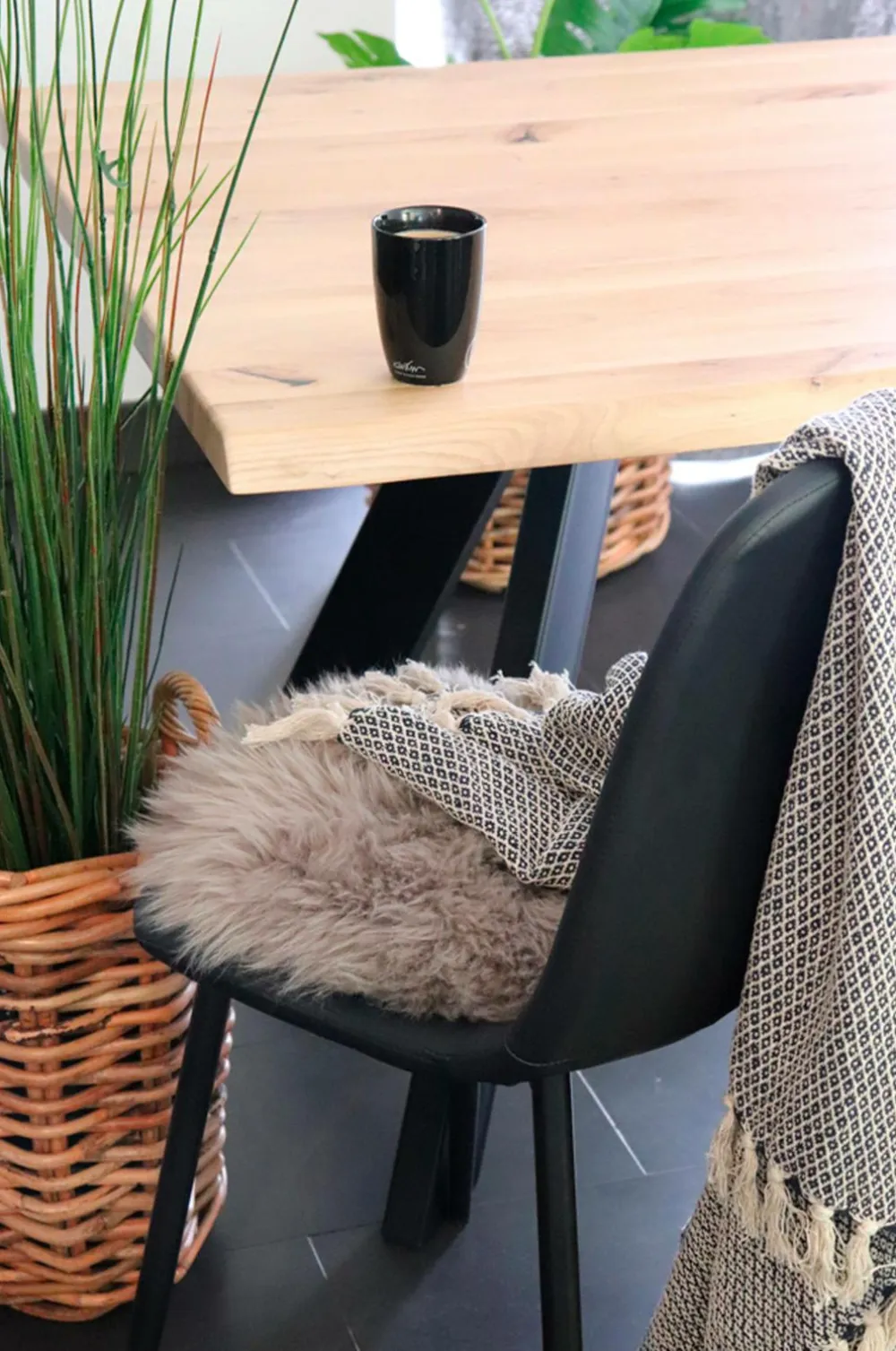 Nordisk lammeskindssæde. Mål: Længde: 35 cm. Bredde: 35 cm. Højde: 5 cm. Materiale: Ægte lammeskind.