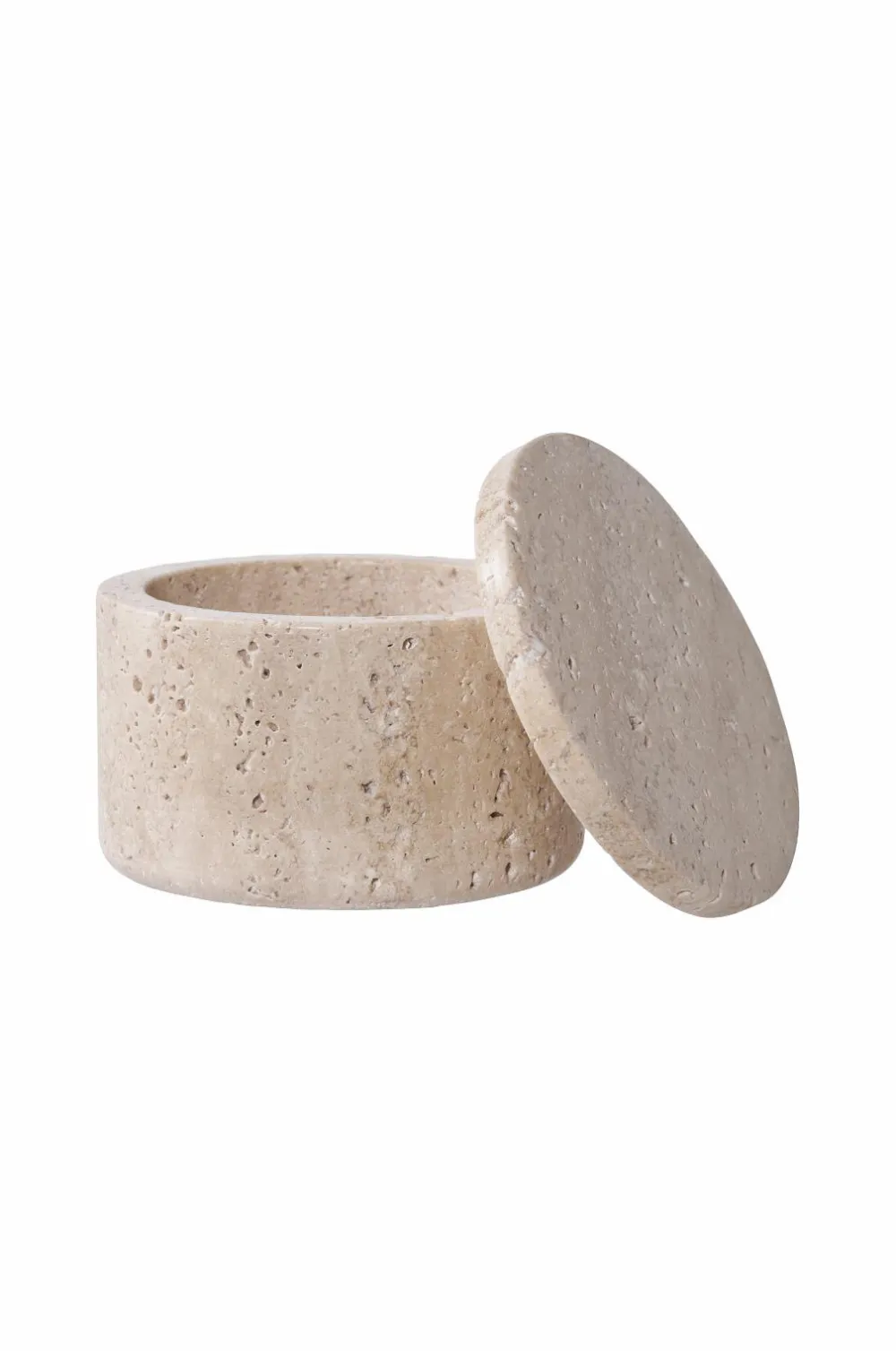 Opbevaringskrukke, travertin, ø10×6,5 cm