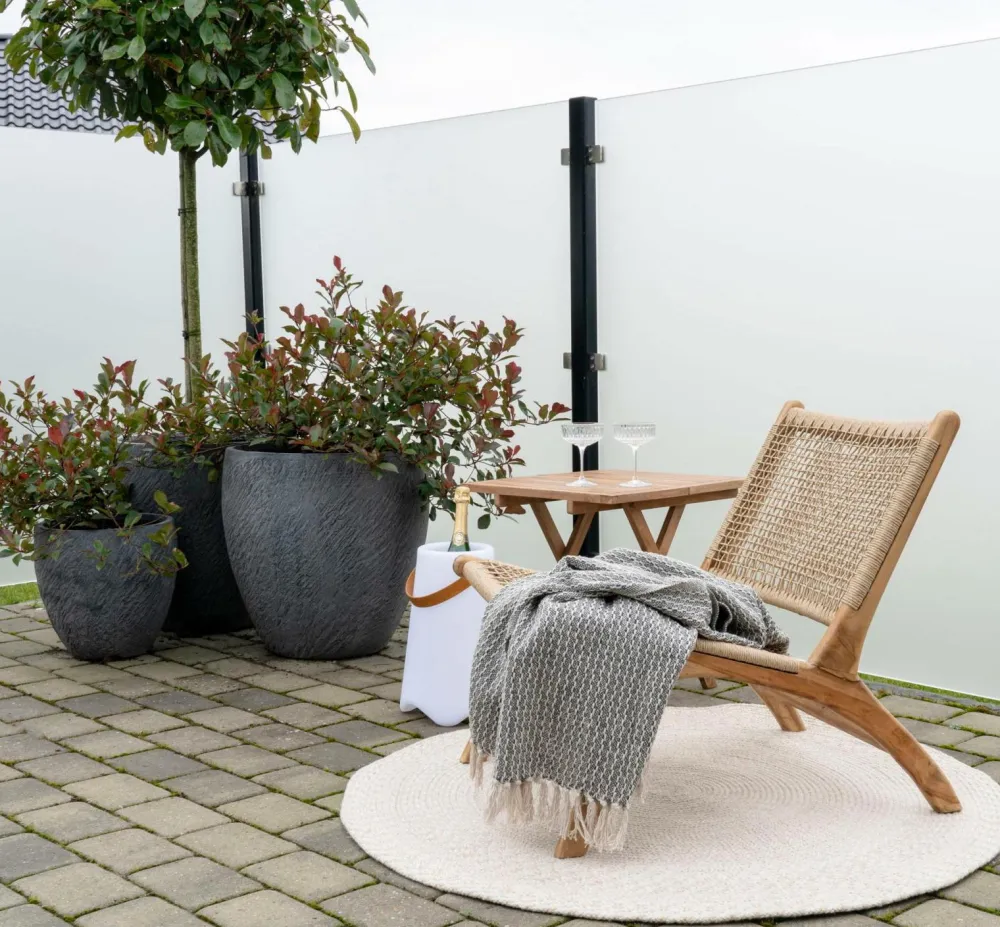 Stol i teak och polyrattan, ikke samlet, 80x60x73, 6,1kg