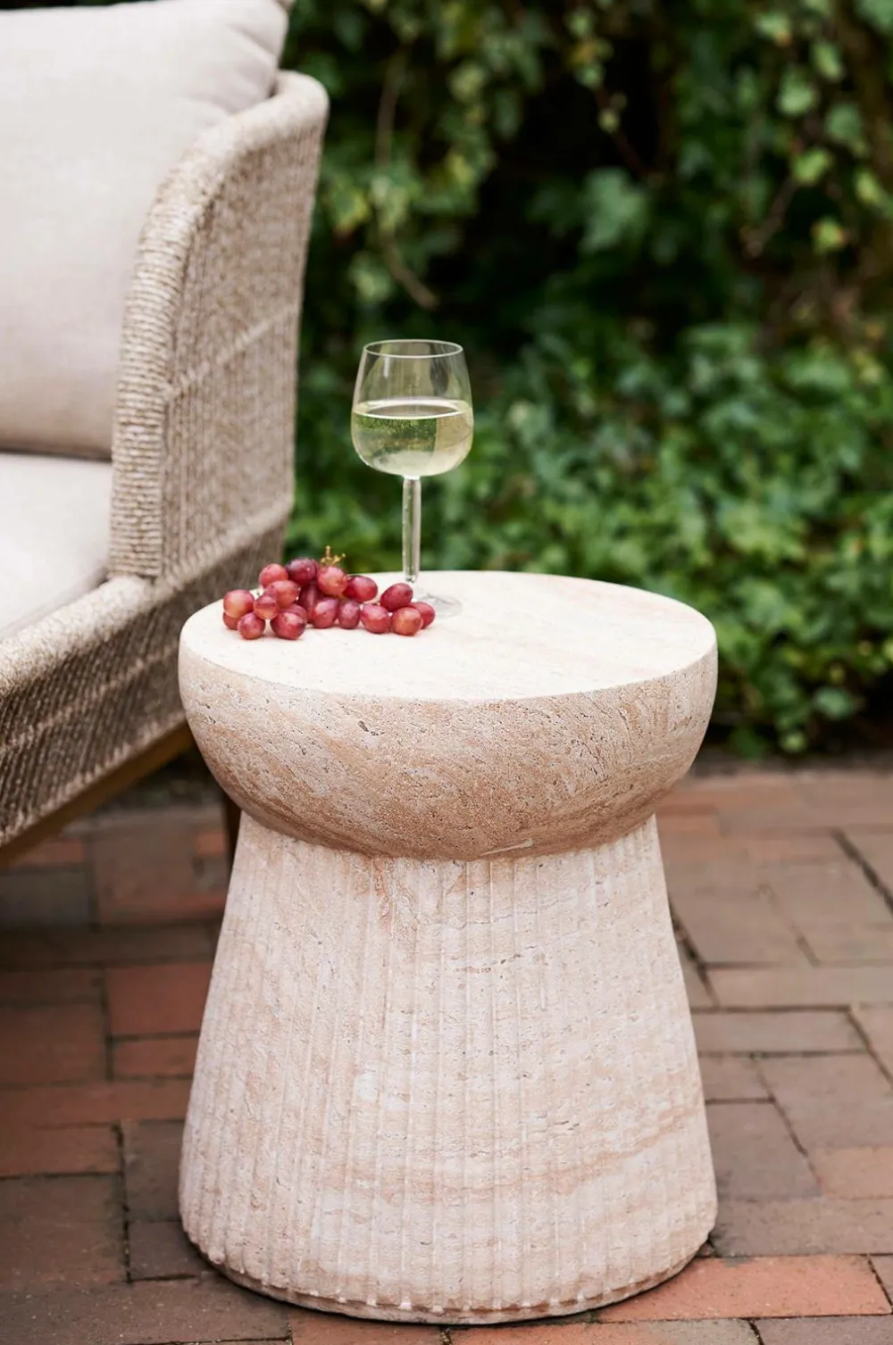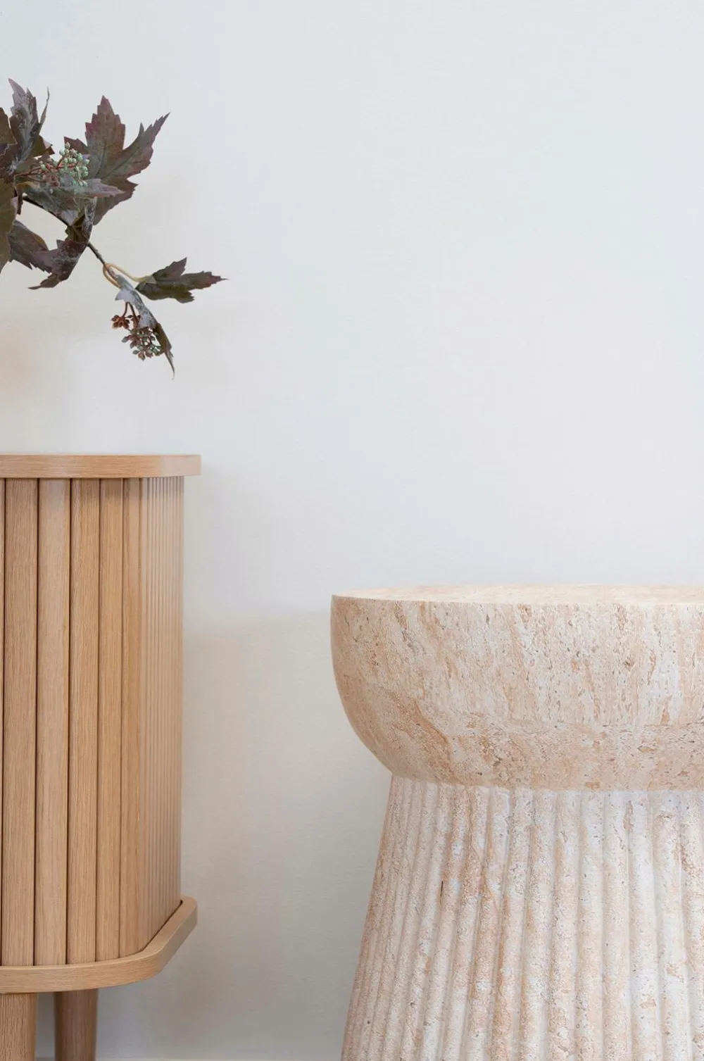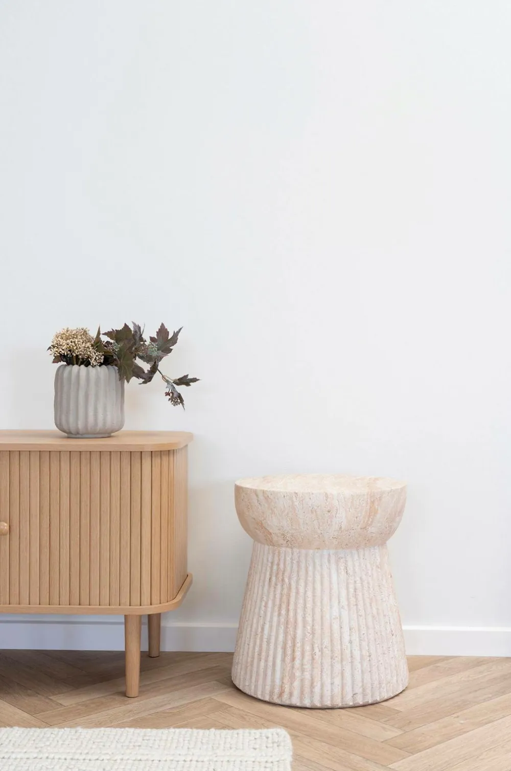 Sidebord, fiberclay med rilledesign, natur, ø37×43 cm