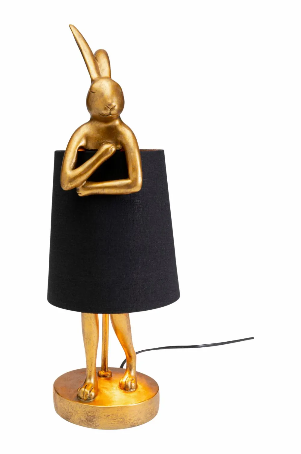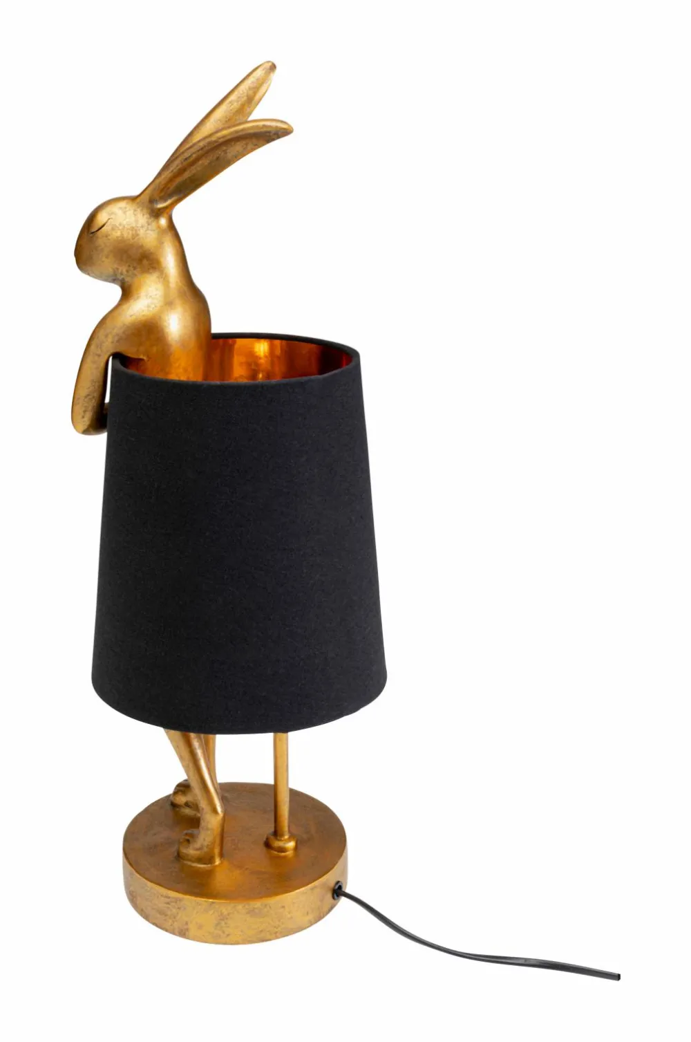Med denne bordlampe på 50 x 17 x 20 cm (hxbxd) kan du skabe helt særlige højdepunkter i din stue eller dit soveværelse. Den dekorative guldfarvede kaninfigur af kunststen og den hvide skærm gør denne lampe til et ægte designerstykke.