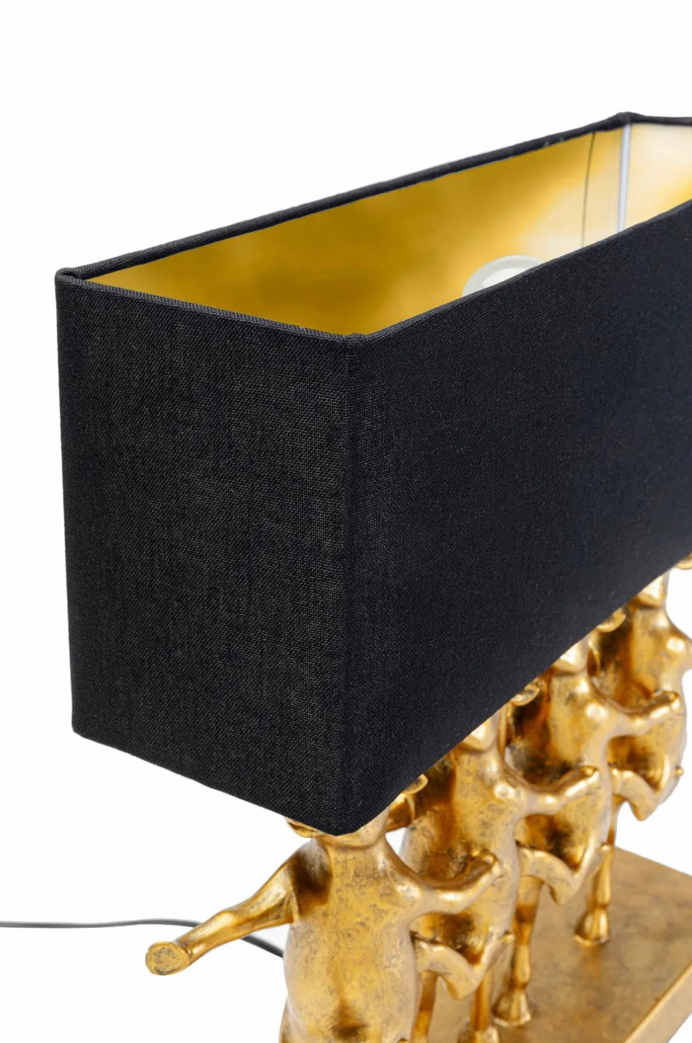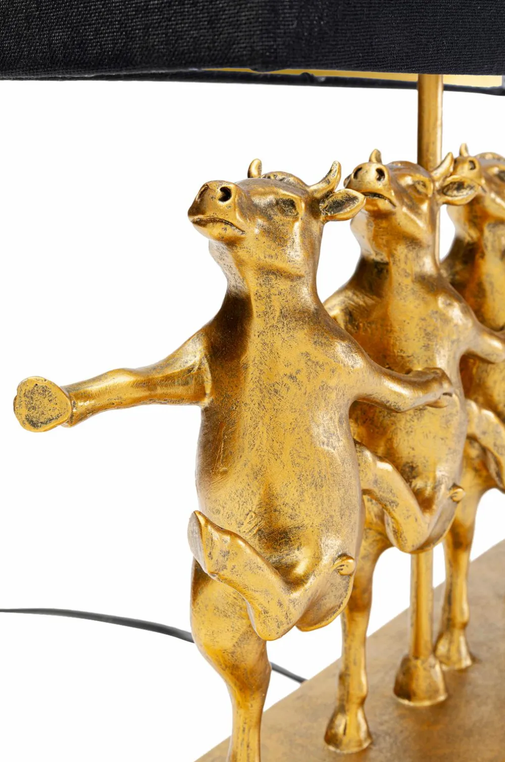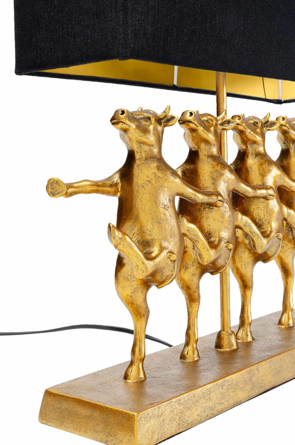 Et stykke humor og designkunst i ét: Denne bordlampe tilføjer legende ekstravagance med sine spankulerende ko-figurer. Skulpturelle lamper som denne model bringer ikke kun lys ind i mørket, men også personlighed til skænke, sideborde eller konsoller. Den sorte finish giver looket et moderne, urbant præg og gør den til et højdepunkt i en stilfuld indretning. Det usædvanlige design ser særligt charmerende ud i kombination med minimalistiske møbler eller som et ironisk stilbrud i elegante boligmiljøer. Ideel til at sætte særlige accenter og tilføje et strejf af individualitet til hjemmet.