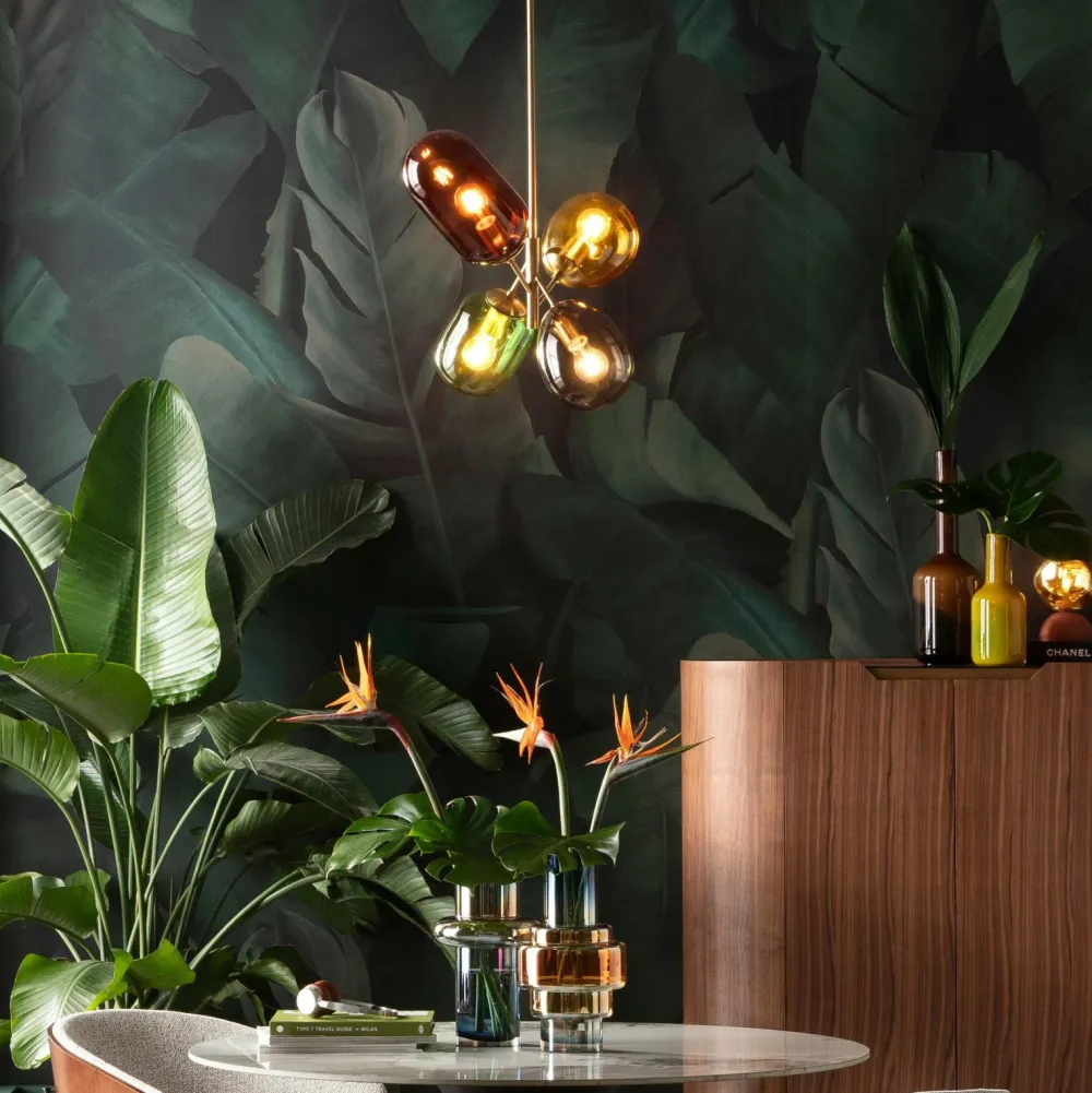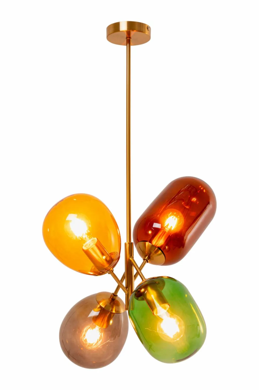 De halvgennemsigtige glasskærme på denne pendellampe danser gennem rummet som svævende farvestænk – inspireret af glitrende balloner, der udstråler lethed og fantasi. I bløde toner som røggrå, honninggul, mosgrøn og varm brun giver designet et stemningsfuldt lys med kunstnerisk flair. Den elegante messinglook-finish giver armaturet et touch af høj kvalitet og gør det til et stilfuldt fokuspunkt over spisebordet, i høje gange eller som en kreativ lysinstallation i stuen. Særligt effektiv i rene indretninger eller i et spændende miks med møbler fra midten af århundredet og statement pieces. Et design, der ikke bare skinner – men inspirerer.