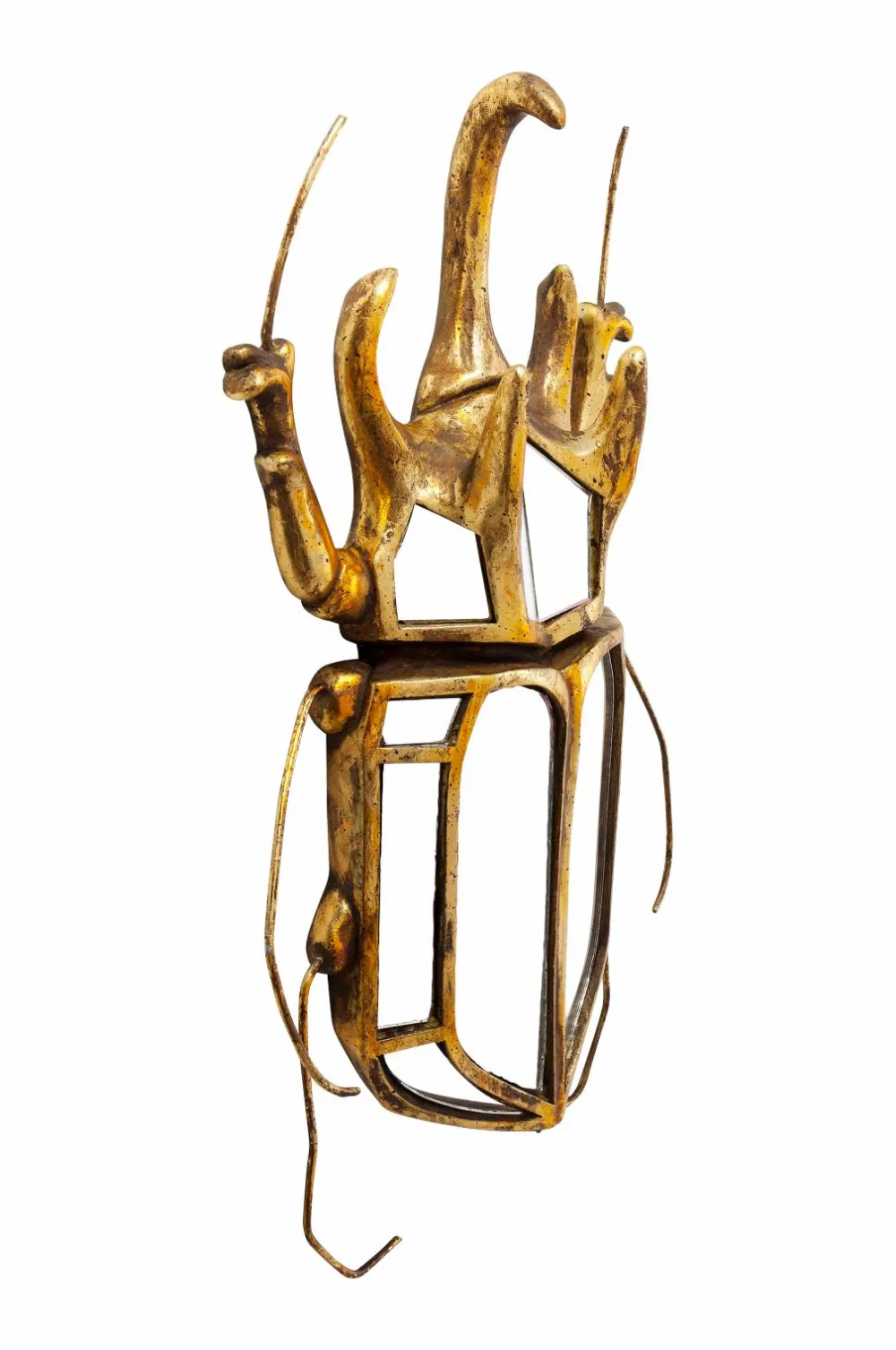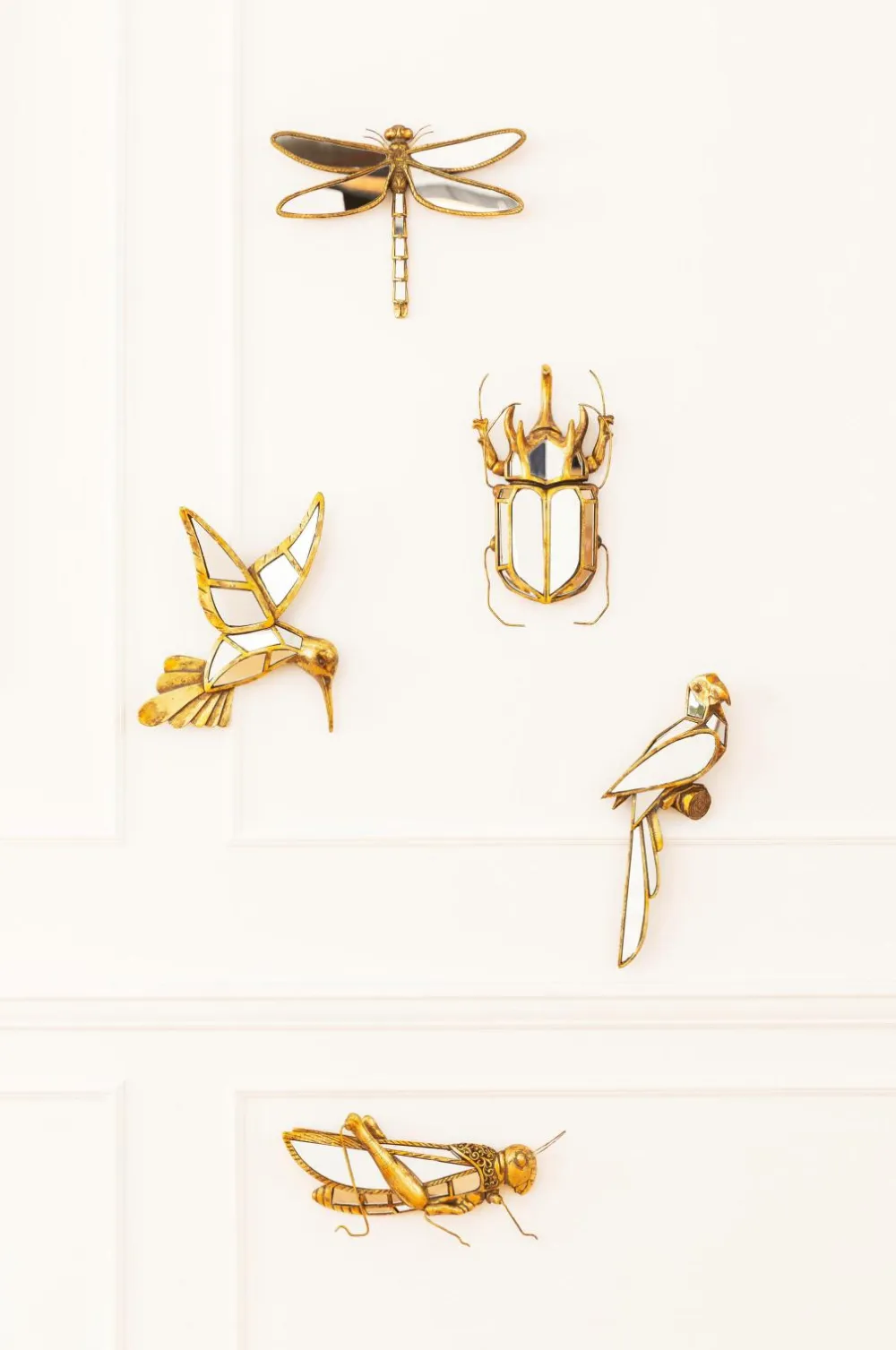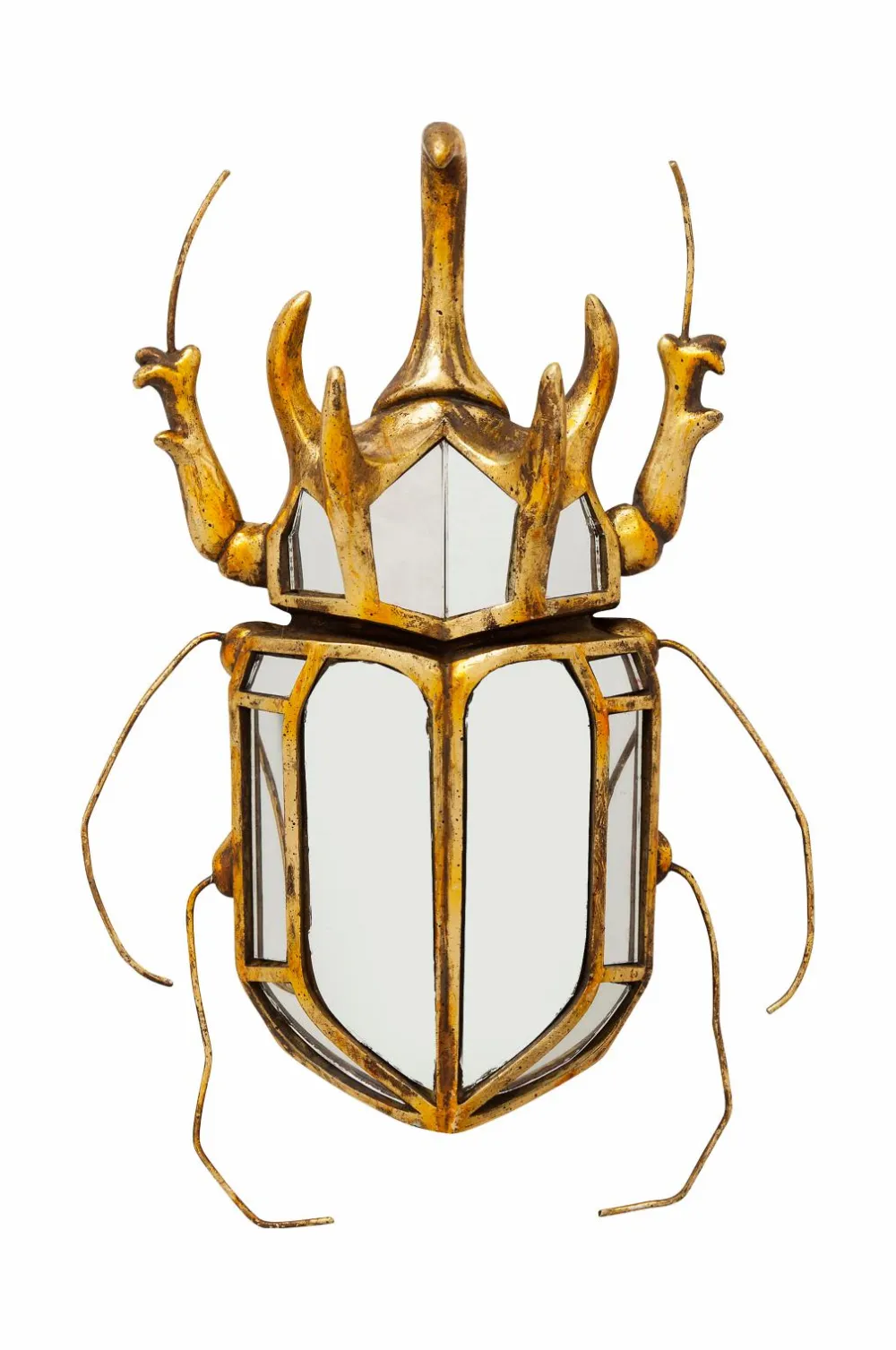 Et smukt spejl i form af en bille, der med garanti vil være et blikfang på enhver væg. Spejlglasset i kombination med den guldfarvede ramme giver denne håndlavede vægdekoration en raffineret stil. Passer perfekt ind i både moderne og klassiske indretninger. Denne dekoration er et must, hvis du elsker urban jungle-stilen. Vægdekorationen bliver ekstra imponerende i kombination med andre spejle fra samme kollektion. Fremstillet af spejlglas og plast.