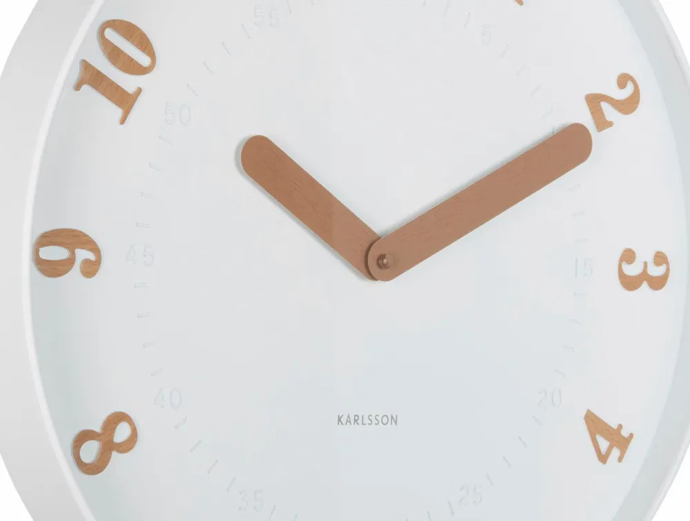 amena -væguret fra Karlsson leger med kontraster. Urskiven er elegant og moderne, mens tallene har et varmt, naturligt look takket være den træfarvede finish. De robuste tal og brede visere giver en klar angivelse af tiden uden at gå på kompromis med stilen. amena passer perfekt ind i temaet med naturlig glød og tilføjer karakter til ethvert rum. En moderne klassiker med en subtil hilsen til naturlige materialer.