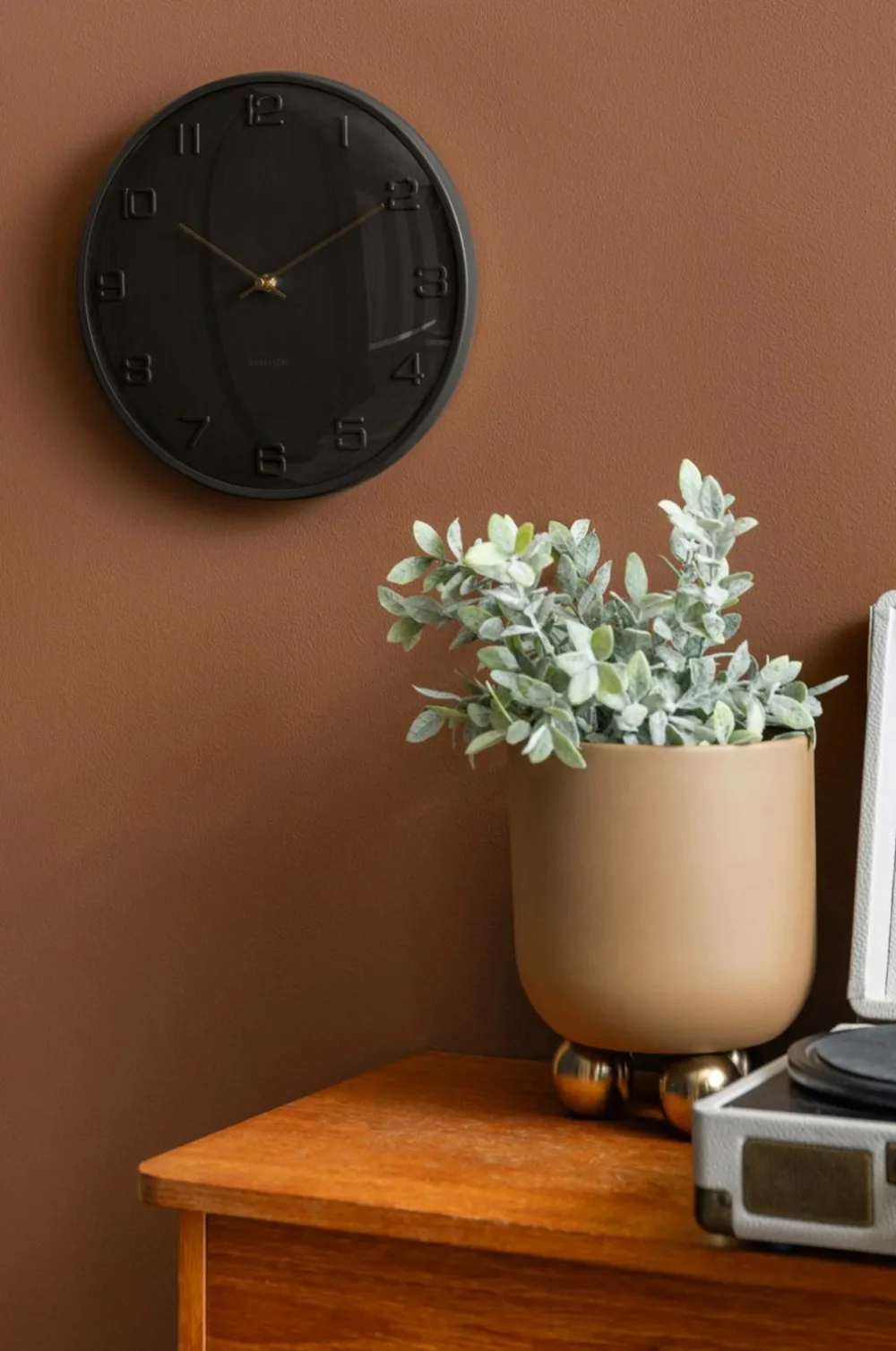 fuerte dome fra Karlsson er et kompakt vægur med karakter. Det hævede glas i form af et dome og de prægede tal skaber dybde og en slående silhuet på væggen. De slanke, guldfarvede visere giver designet et luksuriøst finish. Med sine rene linjer og elegante finish passer dette ur perfekt ind i moderne interiører med en varm kant. Et stilfuldt valg i kompakt størrelse.