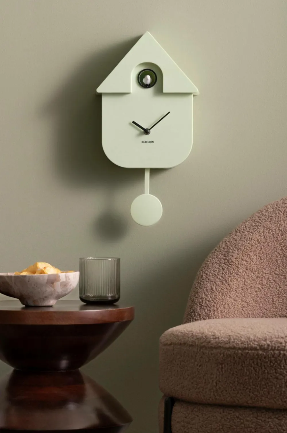 Cuckoo! Hvem kender ikke det gammeldags cuckoo ur? Karlsson gav det traditionelle cuckoo ur et modern look. Og resultatet? Væguret cuckoo. Designet på dette modern cuckoo ur er elegant, og fuglelyden er venlig. Bring et stykke natur ind i dit hjem med dette vægur. Du behøver ikke at bekymre dig om, at cuckoo vil vække dig om natten. Uret er lydløst mellem 22:00 og 06:00. Med karlsson vægur cuckoo vælger du tradition med et modern twist!