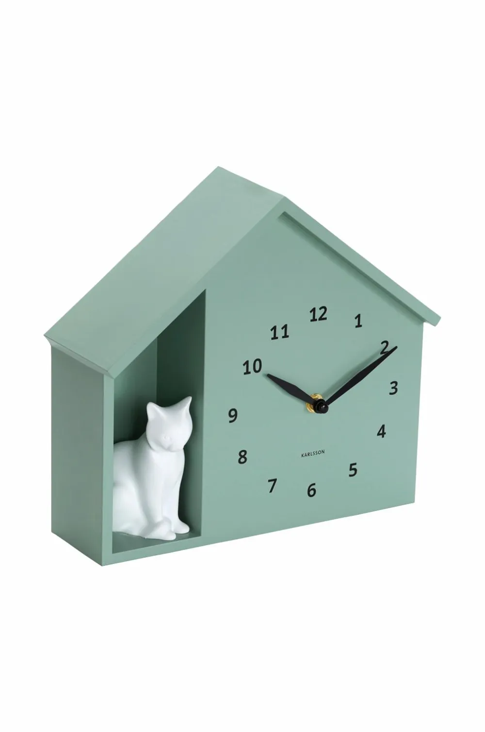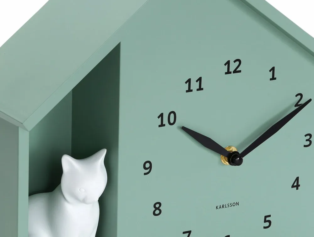 Stilfuld og legende: Karlssons sitting cat vægur er et rigtigt blikfang for cat elskere. Den yndefulde cat sidder tålmodigt i sit hjem og miaver hver time. Med sit minimalistiske design og bløde linjer passer dette ur perfekt ind i et moderne eller skandinavisk interiør. En charmerende tilføjelse til enhver væg.