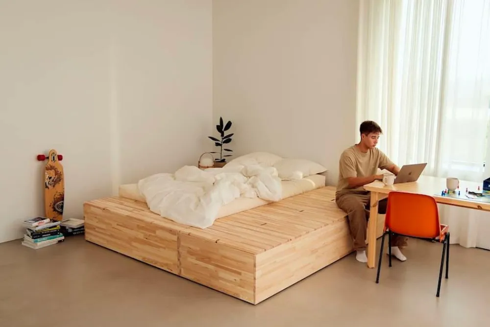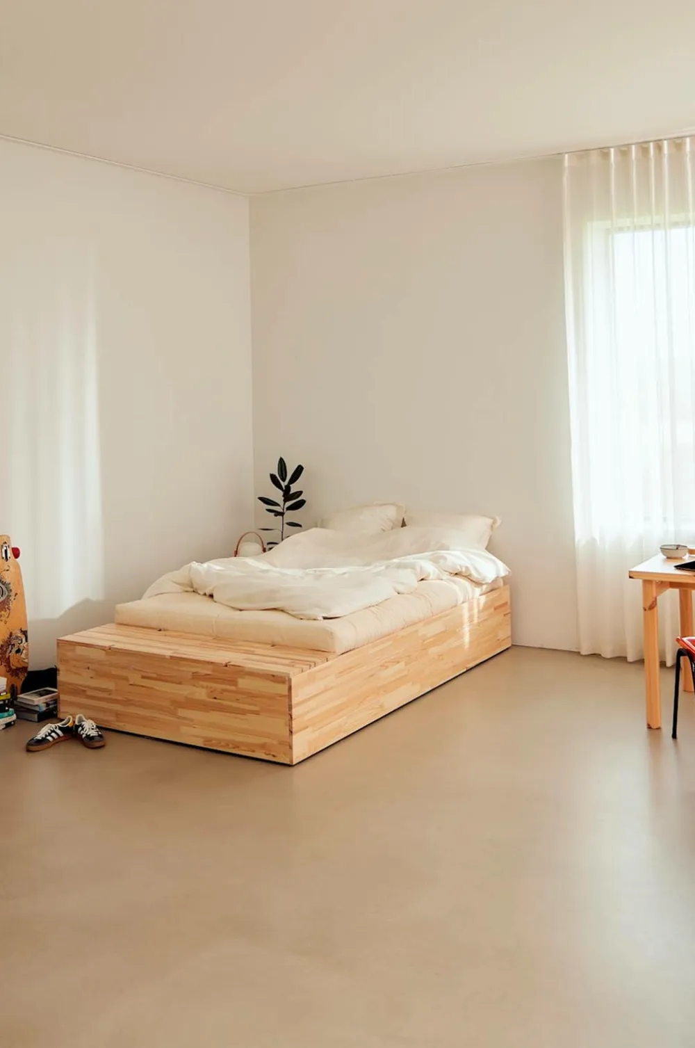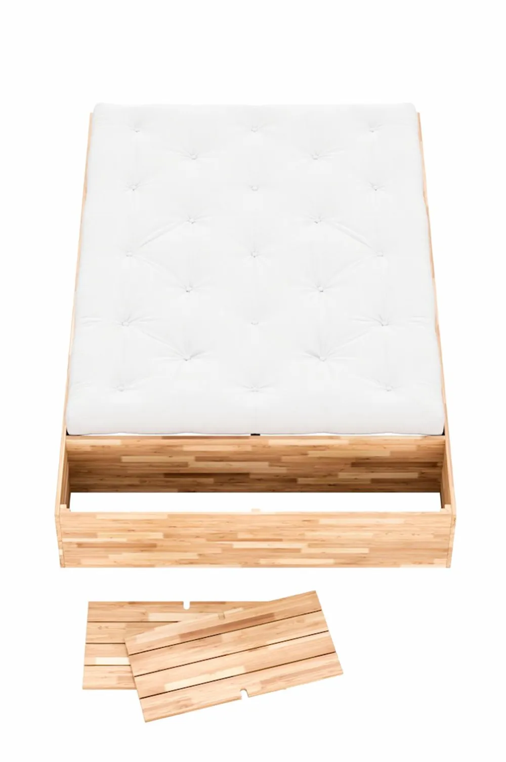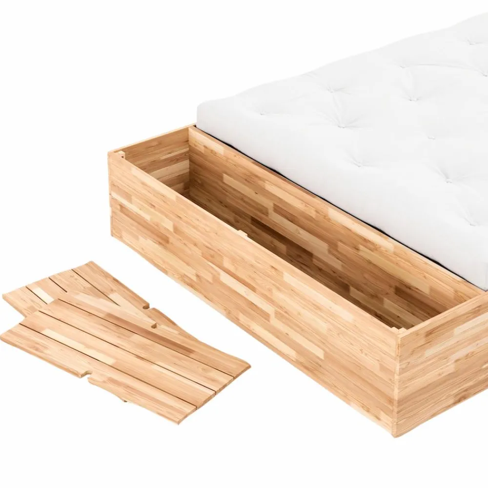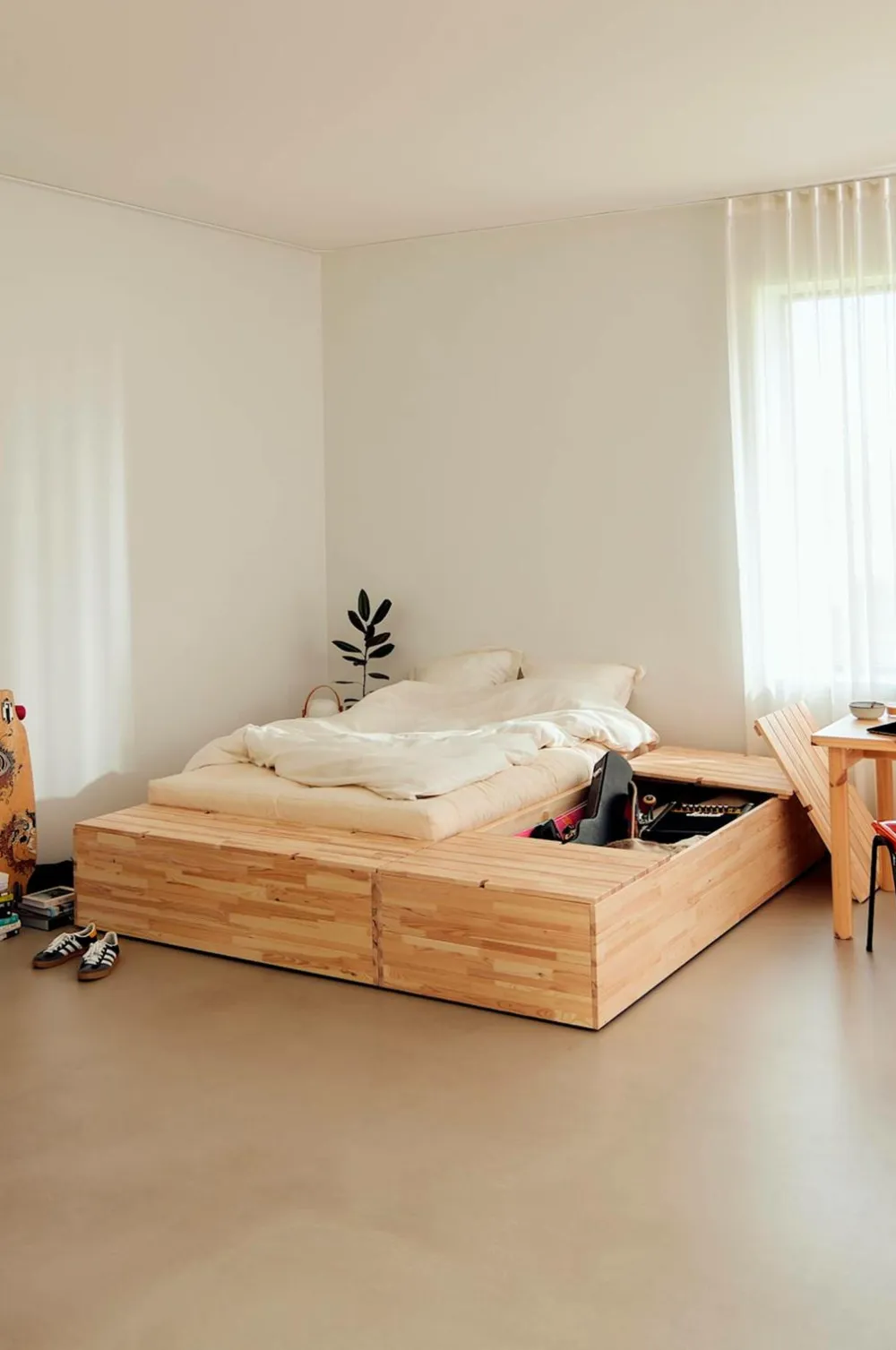 Sov . Hide . Lounge basement sengen, designet af c.f. Møller architects, er den ultimative løsning, der kombinerer elegant soveplads og opbevaring i ét – navnet siger det hele. Perfekt til mindre hjem, hvor hver eneste kvadratmeter tæller. Hele undersiden af basement sengen tilbyder opbevaringsplads til alt det, du ønsker at holde ude af syne, men stadig inden for rækkevidde. Den valgfrie opbevaringsbænk giver både ekstra siddepladser og opbevaring, hvilket gør sengen til et multifunktionelt møbel. Med basement sengen kan du nemt forvandle dit soveværelse til et hyggeligt sted at hænge ud med vennerne – der er masser af plads til at chille, streame og slappe af.