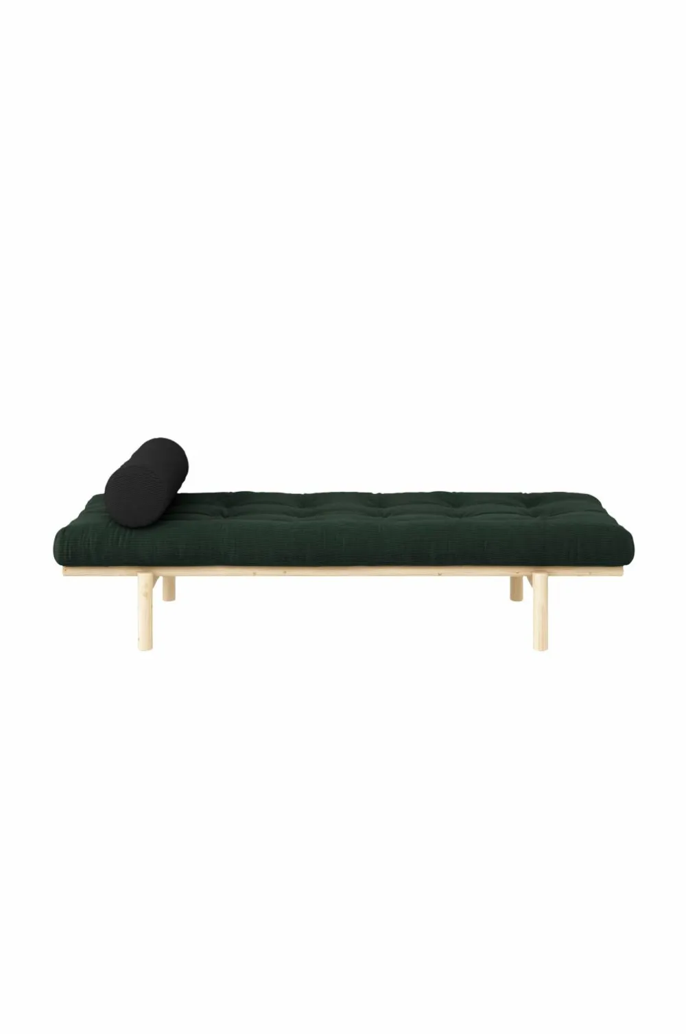 Next daybed er en kombination af en elegant ramme i fyrretræ og en futonmadras i fløjl med en rund pude ovenpå. Daybedden udfordrer stilen i dit hjem, da du kan placere den for at dele stuen op, i indgangen, op mod en væg, i soveværelset eller hvad din fantasi nu kan komme op med.