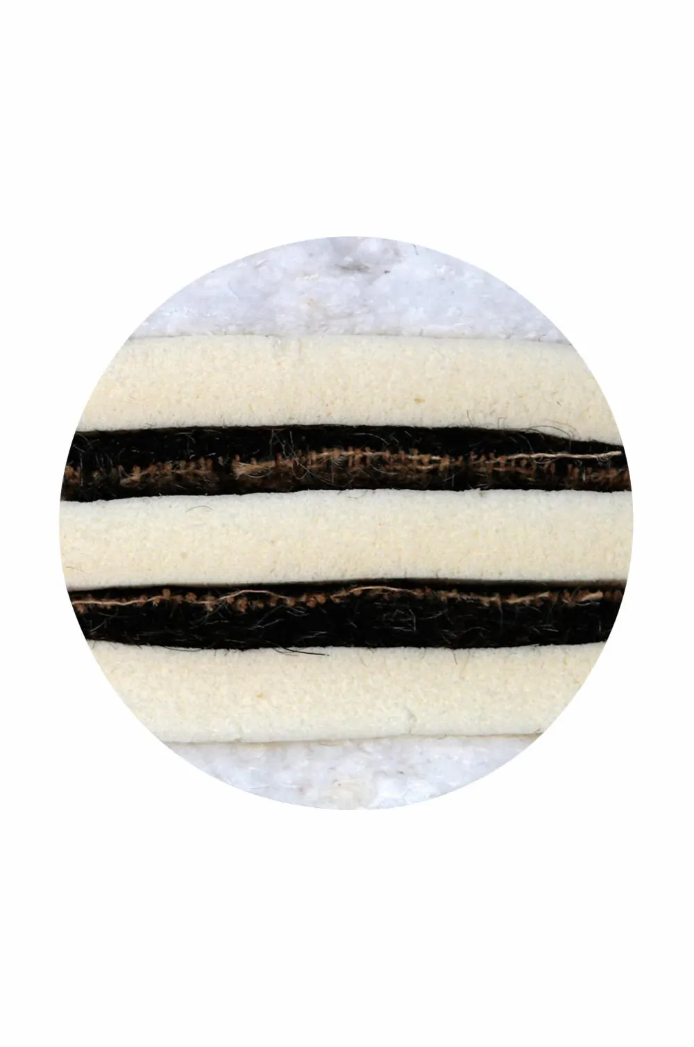 Vores Triple latex futon er en 18 cm tyk sengemadras lavet af bomuld og uld, med en kerne af latexskum og hestehår. Ved at tilføje 5-10% polyester til bomulden får vores futonsenge højere tæthed og tykkelse sammenlignet med traditionelle japanske futonsenge. Men den bevarer stadig alle de gode kvaliteter fra en traditionel japansk futon. Triple latex futon giver dig en blød liggeflade. Bomulden i futonen tilpasser sig din krop og giver den god støtte, ulden er med til at skabe et godt klima, latexen dæmper al bevægelse mens hestehår isolerer mod kulde og leder varme og fugt væk.