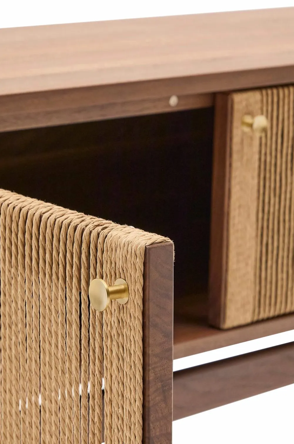Med en tidløs appel forener elan varmen fra valnøddetræ med et rent design. Hvert møbel er et smukt udformet kunstværk, hvor de håndvævede snoredetaljer tilføjer et strejf af rustik elegance til dine rum. Produktets bredde: 200 cm. Produktets dybde: 40 cm. Produktets højde: 50 cm.