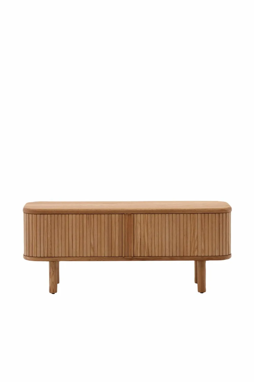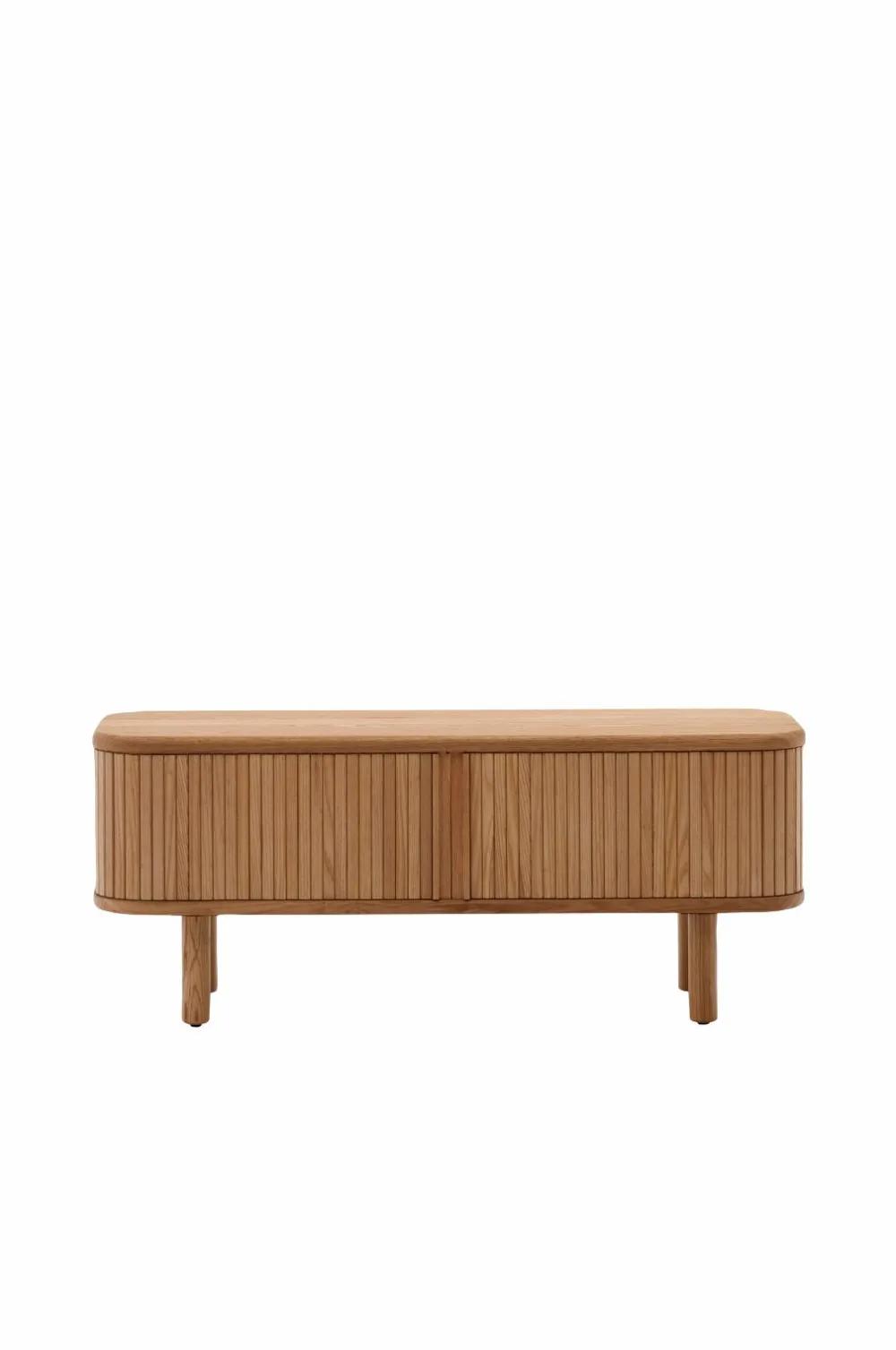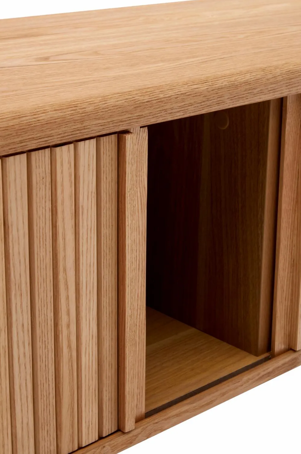 Kave Home-teamet har skabt kollektionen Mailen med et moderne design af afrundede former, lavet af askefinér og skydedøre af trælameller, der gør den til en autentisk stjerne. Produktets bredde: 120 cm. Produktets dybde: 40 cm. Produktets højde: 50 cm.