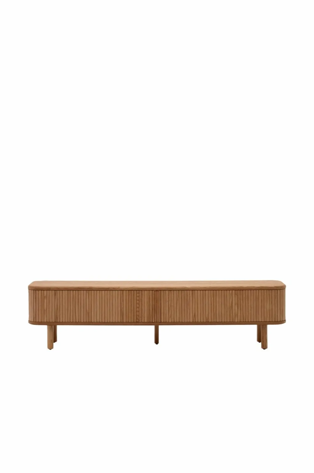 Kave Home-teamet har skabt kollektionen Mailen med et moderne design af afrundede former, lavet af askefinér og skydedøre af trælameller, der gør den til en autentisk stjerne. Produktets bredde: 200 cm. Produktets dybde: 40 cm. Produktets højde: 50 cm.