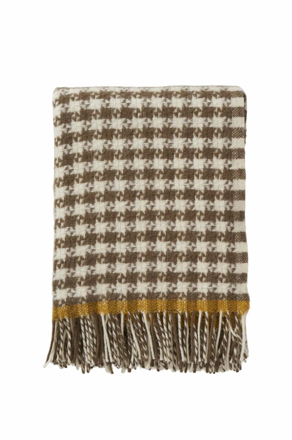 Dogtooth har et klassisk mønster i forskellige farvekombinationer. Den vævede struktur skaber et stærkt grafisk udtryk. Lammeuld giver et varmt, naturligt smudsafvisende tæppe, der passer både på sofaen og som sengetæppe. 100% lammeuld, 130×200 cm. Maskinvask ved 30 grader. Kun uldprogram. Vask separat. Stryg ved medium temperatur. Tør ikke i tørretumbler. Brug ikke blegemiddel.