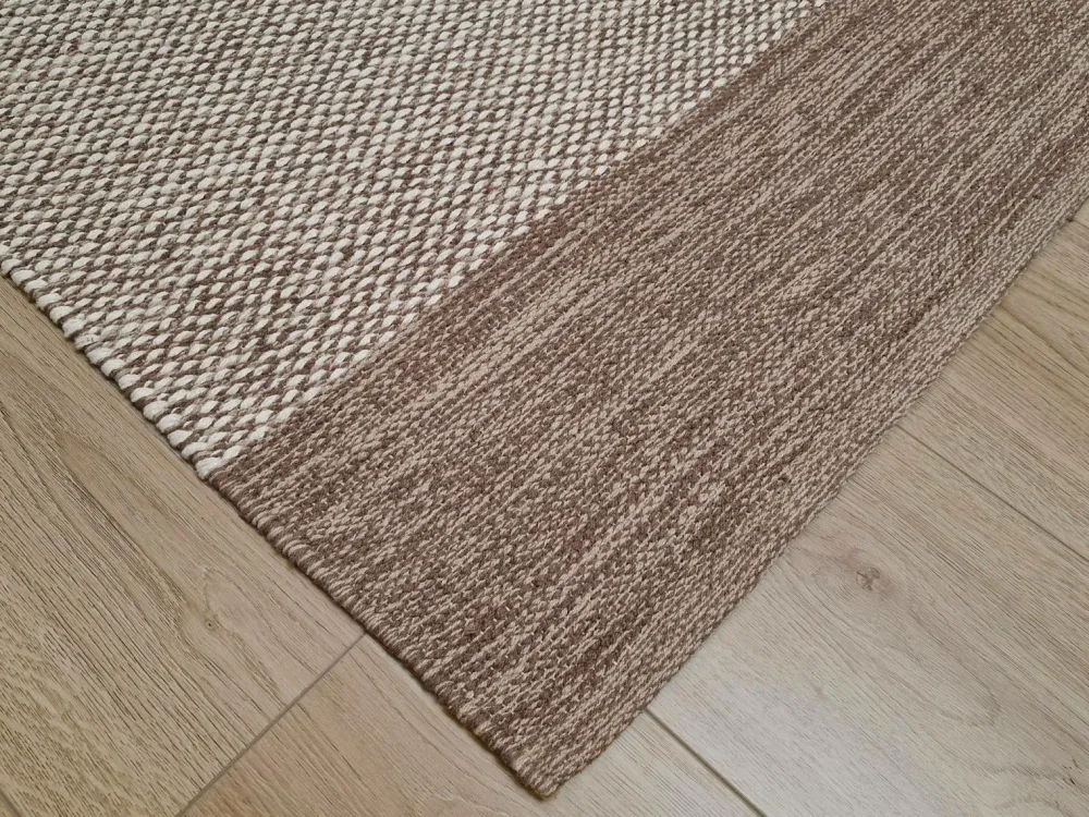 Vaskeanvisning: Kludetæpper skal håndvaskes i koldt vand med sæbe eller et mildt rengøringsmiddel. Skrub med en blød børste i stribernes retning på begge sider, og skyl derefter, og lad tæppet tørre fladt. Tæppet kan blive lidt boblende, hvilket forsvinder efter et par dages brug.