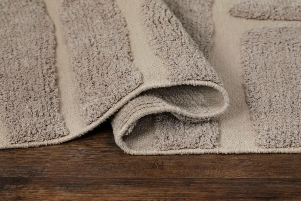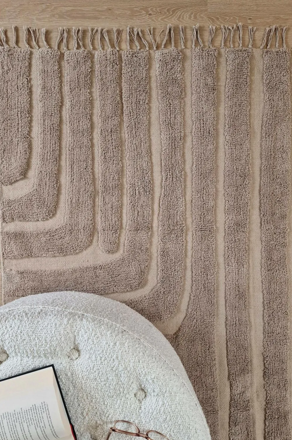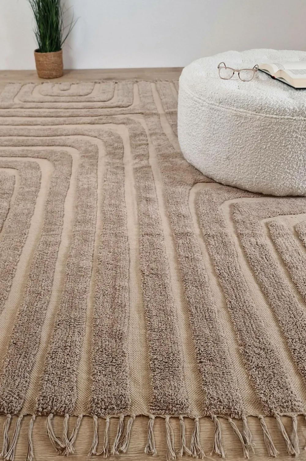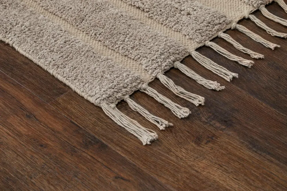 Morocco er et håndvævet tæppe i 100% bomuld, med sit tuftede mønster og knyttede frynser, giver det din indretning en hjemlig følelse. Gulvtæppet har høje og lave partier hvilket skaber et flot og afslappet tæppe i et uregelmæssigt mønster.