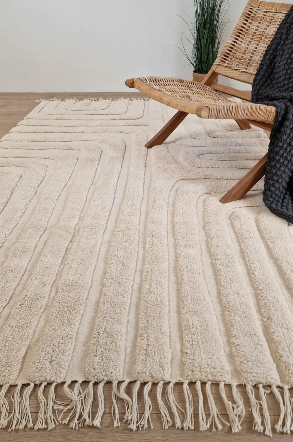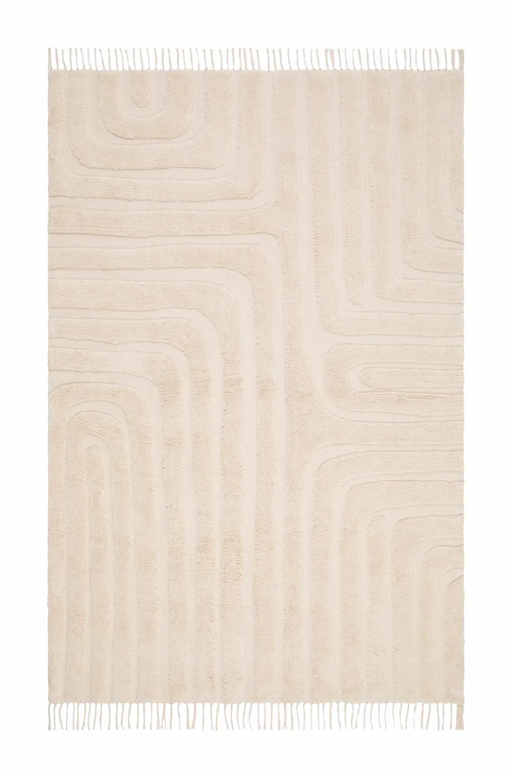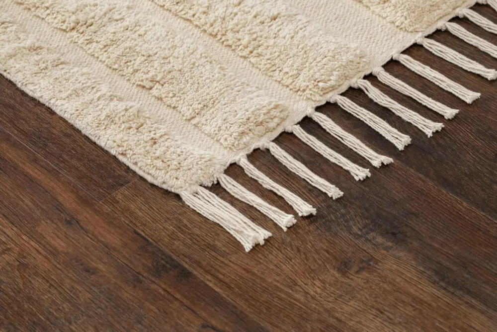 Morocco er et håndvævet tæppe i 100% bomuld, med sit tuftede mønster og knyttede frynser, giver det din indretning en hjemlig følelse. Gulvtæppet har høje og lave partier hvilket skaber et flot og afslappet tæppe i et uregelmæssigt mønster.