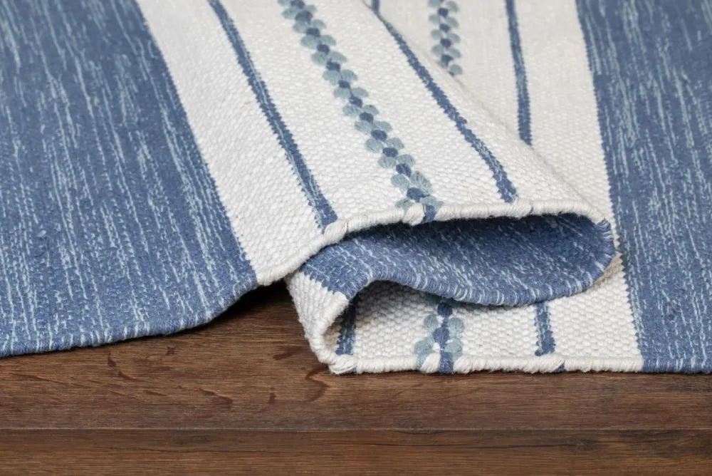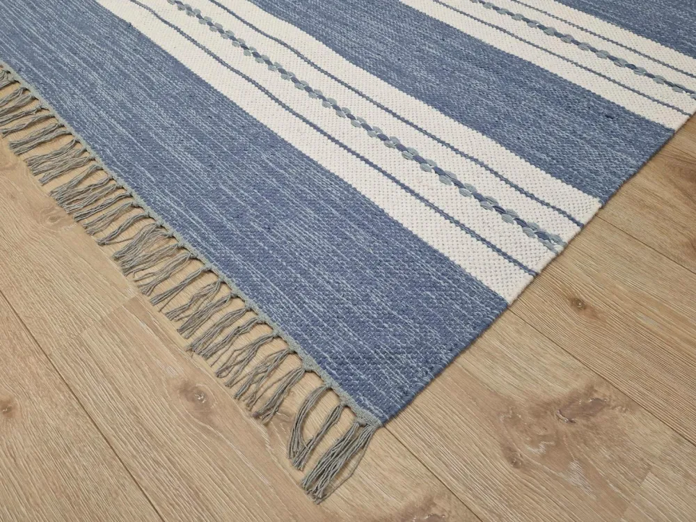 Dette er et håndvævet bomuldstæppe, hvilket betyder, at mønster og farve kan variere, hvilket gør hvert tæppe unikt. Tæppet er vævet i ren bomuld, hvilket gør det både blødt, slidstærkt og holdbart. Det skaber en hyggelig følelse, der giver liv og samtidig dæmper lyd.