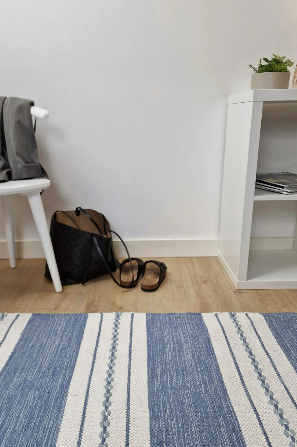 Yarn carpet sund er en serie stribede bomuldstæpper med de klassiske frynser. Da sund er vendbar og kan bruges på begge sider, giver det tæppet en lang levetid, fordi man på den måde får to tæpper i ét. Garntæpper er et klassisk element i det svenske hjem og passer lige så godt i køkkenet som i soveværelset eller entreen.