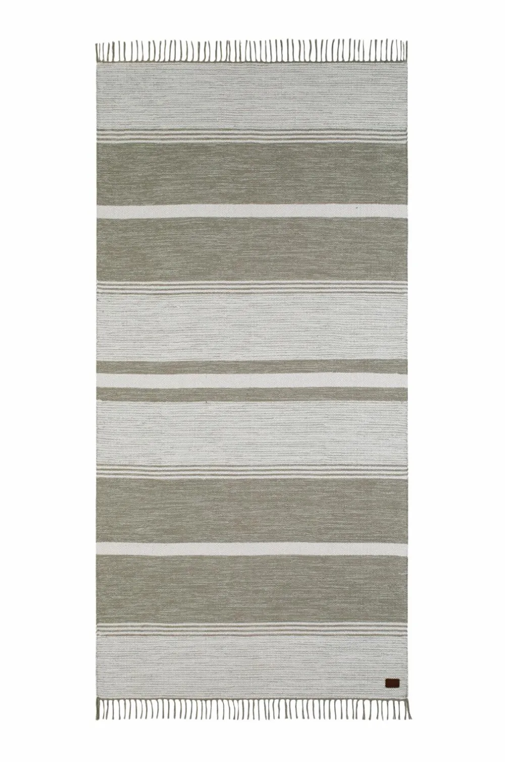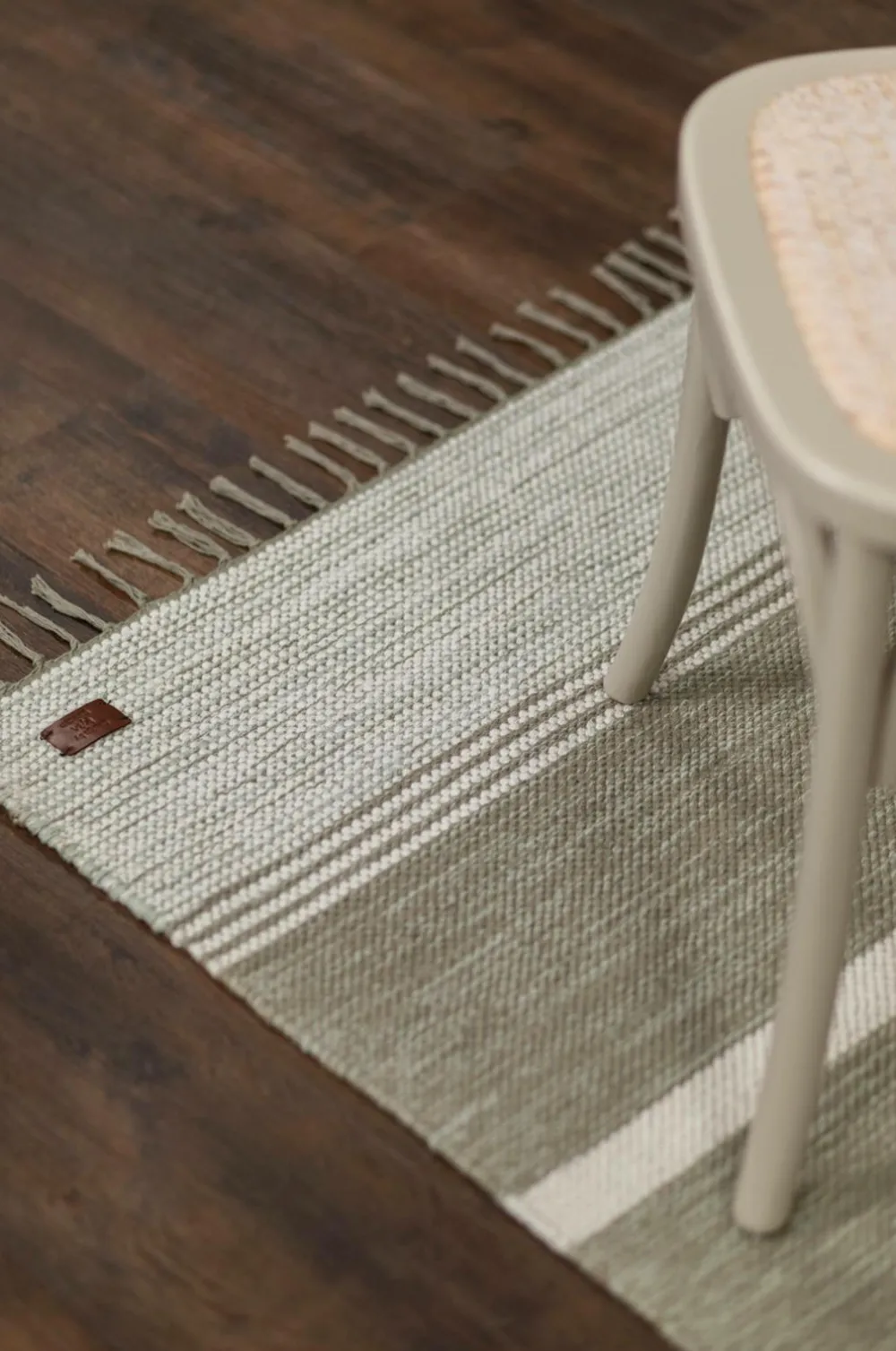 Kludetæppe Vindö er en serie håndvævede bomuldstæpper med det klassiske stribede mønster og frynser på kortsiderne. Da tæppet er vendbart og kan bruges på begge sider, giver det tæppet en lang levetid, fordi du på den måde får to tæpper i ét. Kludetæpper og køkkener er et koncept, der går hånd i hånd, men tæppets høje brugsniveau gør, at det passer lige godt i soveværelset, vaskerummet eller som et indbydende entrétæppe.