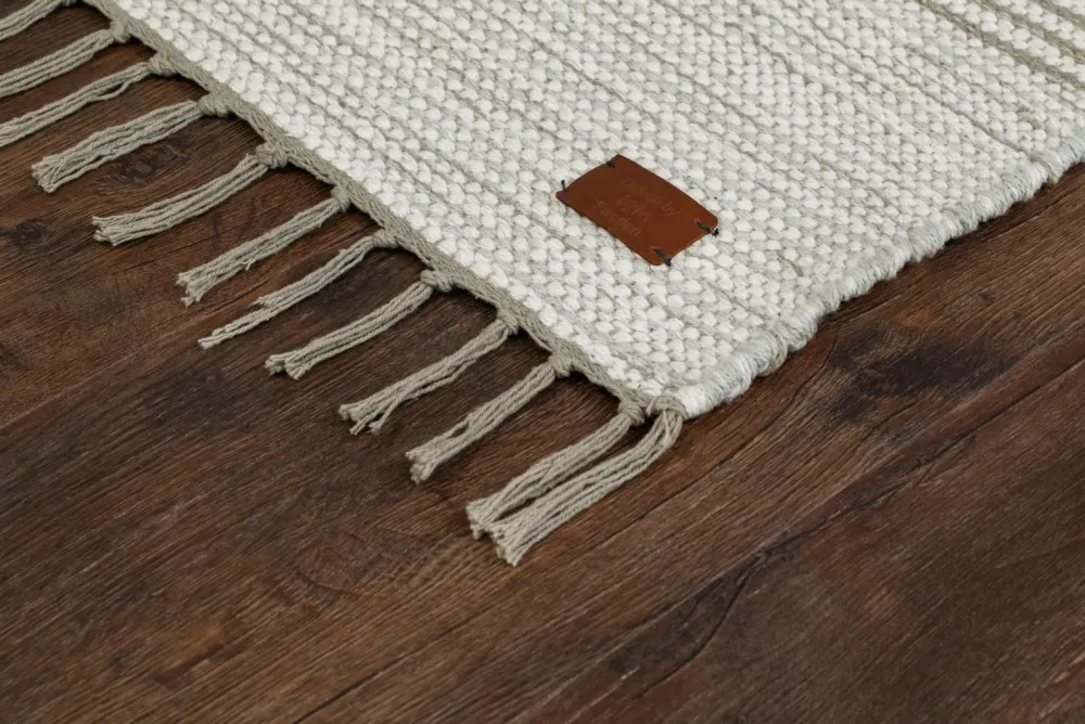 Dette er et håndvævet bomuldstæppe, hvilket betyder, at mønsteret og farven varierer, hvilket gør hvert tæppe unikt. Tæppet er vævet i ren bomuld, hvilket gør det både blødt, robust og slidstærkt. Det skaber en hyggelig følelse, der liver rummet op og samtidig dæmper lyden.