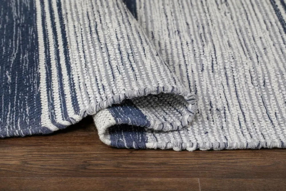 Rengøring: Stribede kludetæpper skal håndvaskes i koldt vand med sæbe eller et mildt rengøringsmiddel. Skrub med en blød børste i stribernes retning på begge sider og skyl derefter, lad tæppet tørre fladt eller hæng det i stribernes retning – brug gerne flere tørresnore. Tæppet kan blive let boblende, som dog forsvinder efter et par dages brug.Hvert teppe er laget for hånd, og derfor er ikke to tepper like. Det kan derfor forekomme små forskjeller i farge og størrelse.