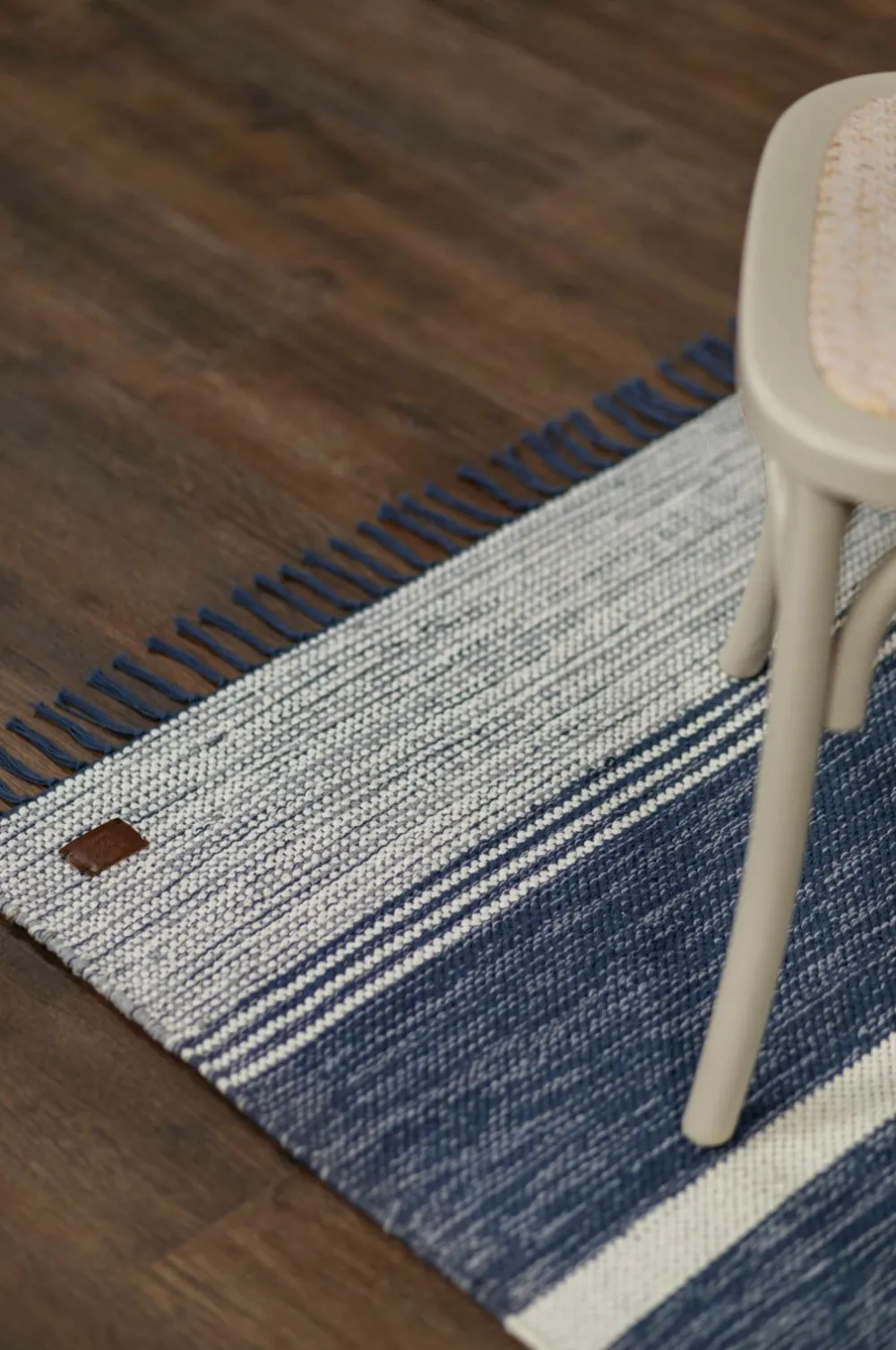 Kludetæppe Vindö er en serie håndvævede bomuldstæpper med det klassiske stribede mønster og frynser på kortsiderne. Da tæppet er vendbart og kan bruges på begge sider, giver det tæppet en lang levetid, fordi du på den måde får to tæpper i ét. Kludetæpper og køkkener er et koncept, der går hånd i hånd, men tæppets høje brugsniveau gør, at det passer lige godt i soveværelset, vaskerummet eller som et indbydende entrétæppe.