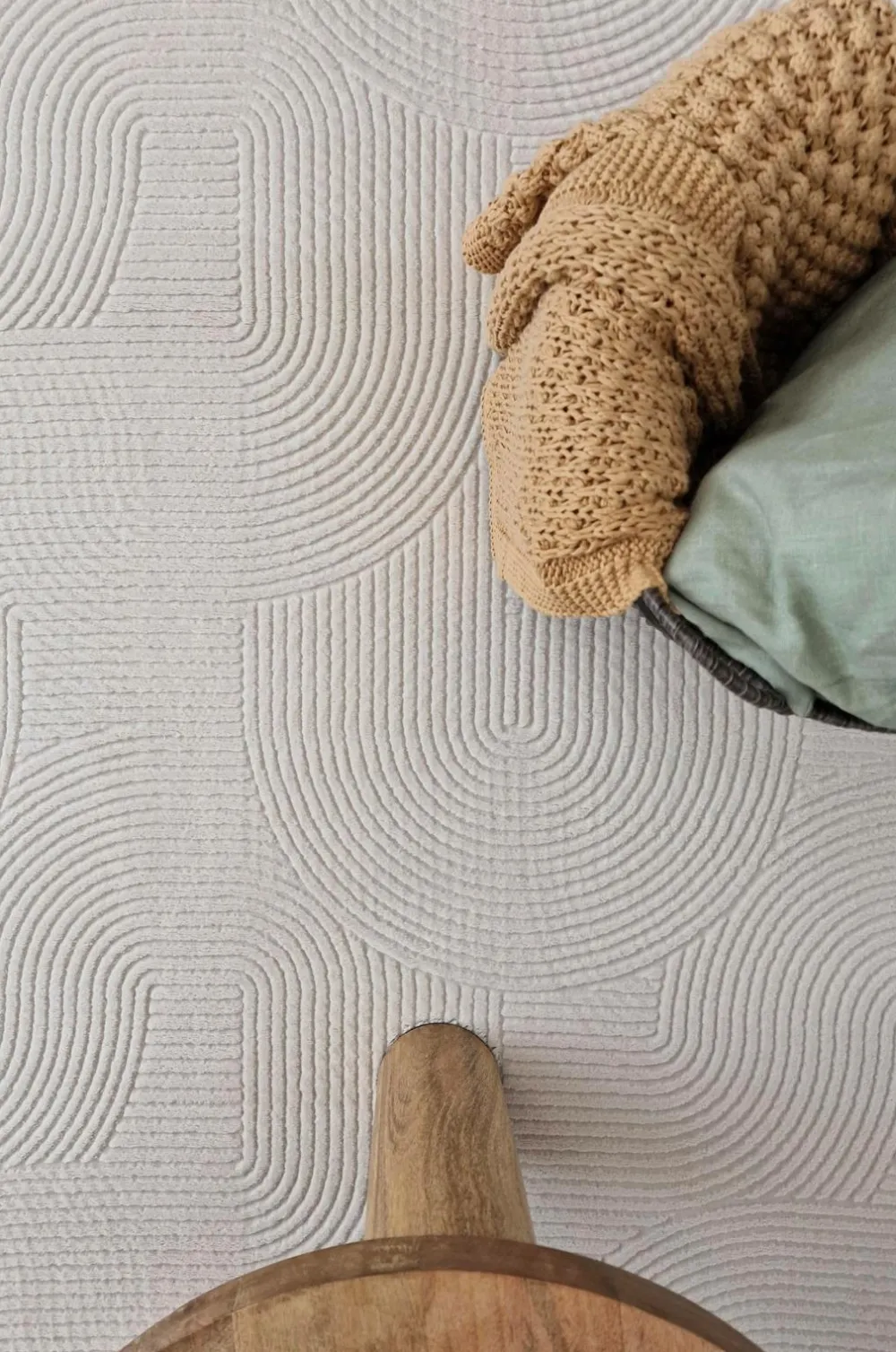Castello er et ensfarvet blødt tæppe med former vævet med high/low-effekt. Den klare glans giver nærmest en følelse af 3D-effekt i mønsteret.