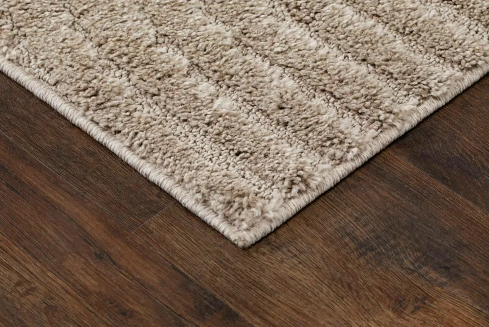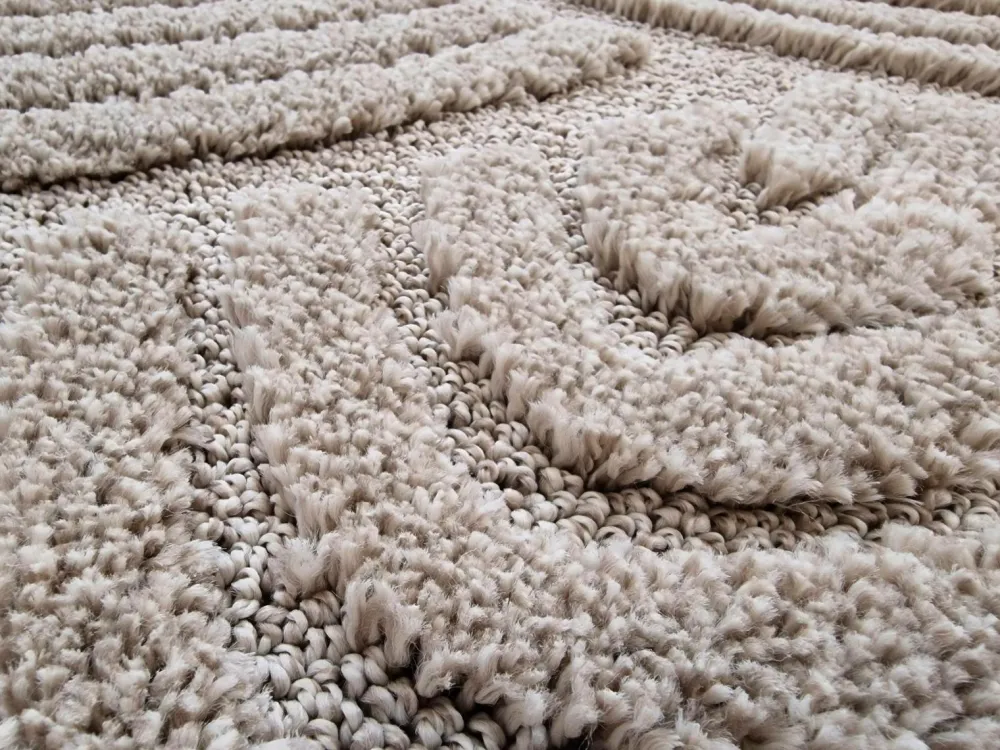 Vævningen med dens forskellige luvlængder gør, at mønstret i tæppet skiller sig ud og bliver mere effektfuldt.