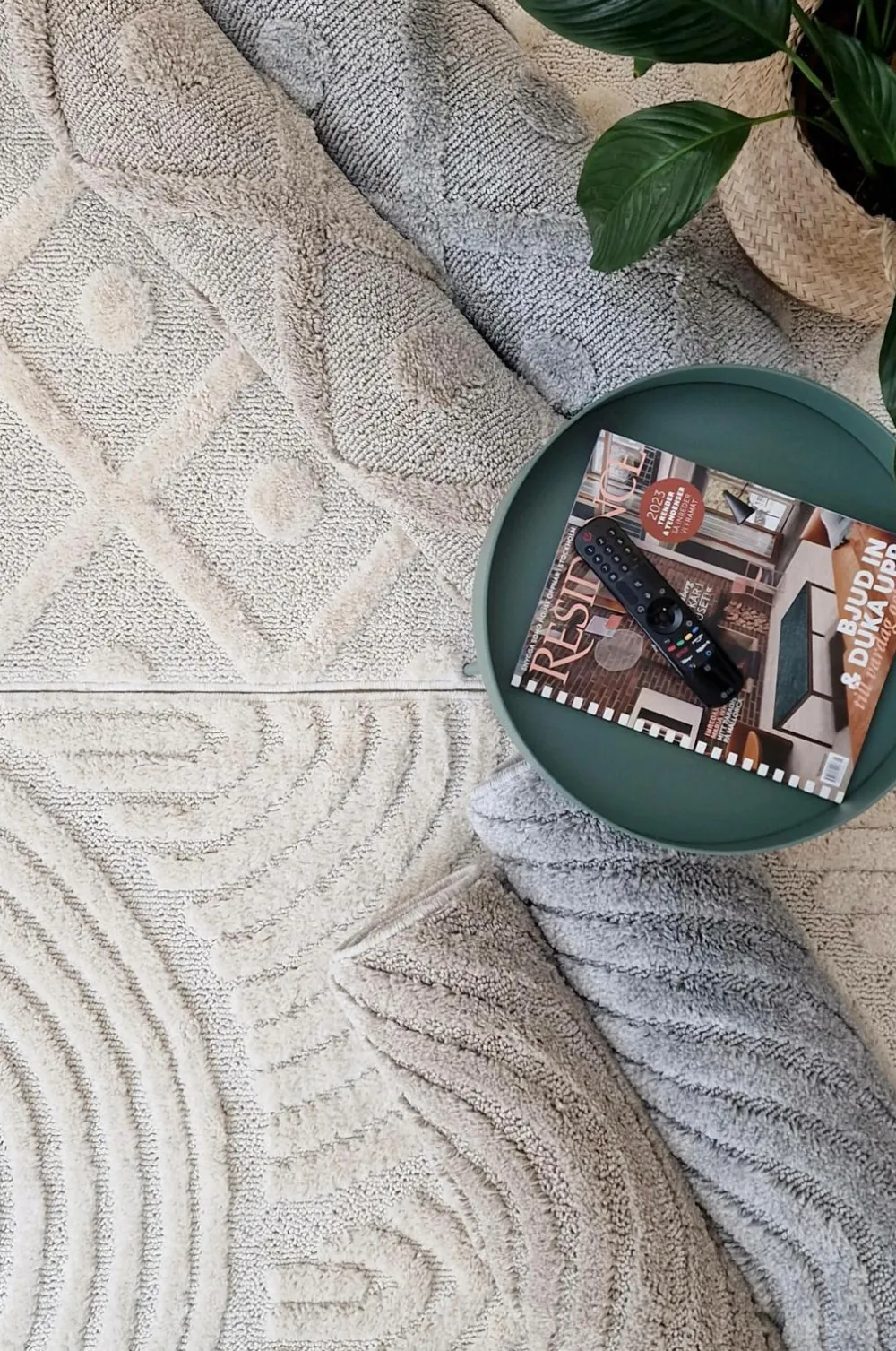 Et tæppe, der giver et harmonisk og roligt indtryk til din indretning.