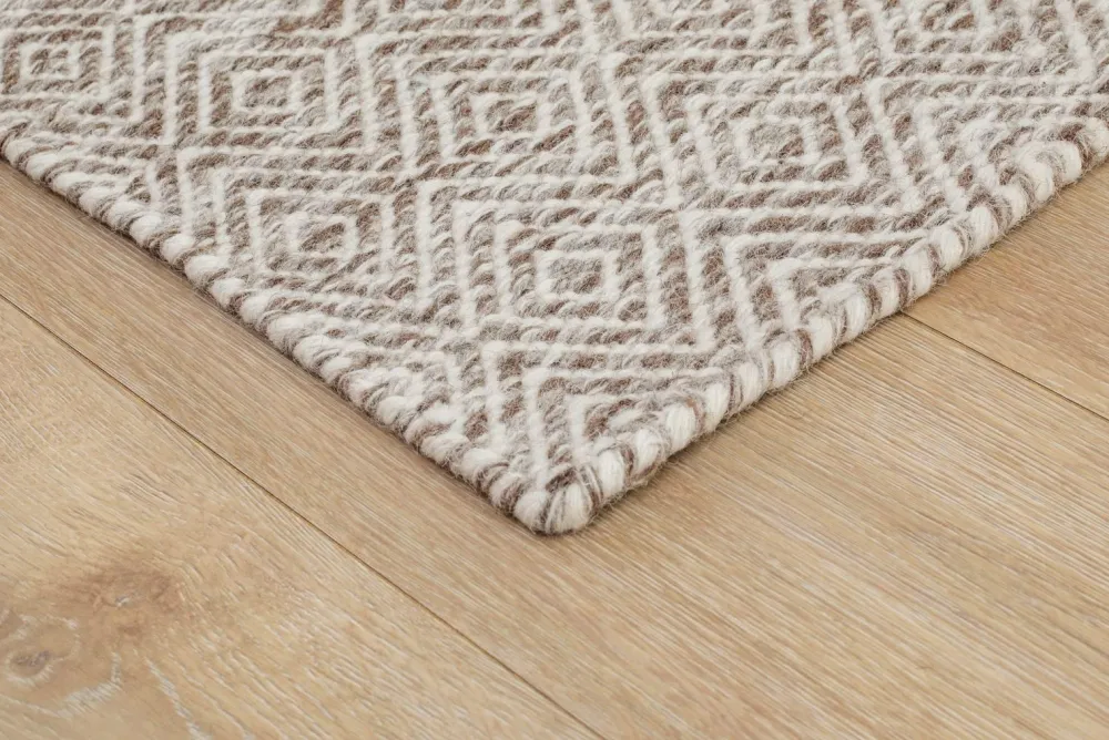 Ulden i tæppet er blød og dejlig at gå på. Det er et slidstærkt materiale, som er naturligt smudsafvisende, holdbart og nemt at holde rent. Der kan forekomme små afvigelser, fordi tæppet er håndvævet. En stilfuld klassiker til at lægge under køkkenbordet eller ved siden af det minimalistiske sengebord.